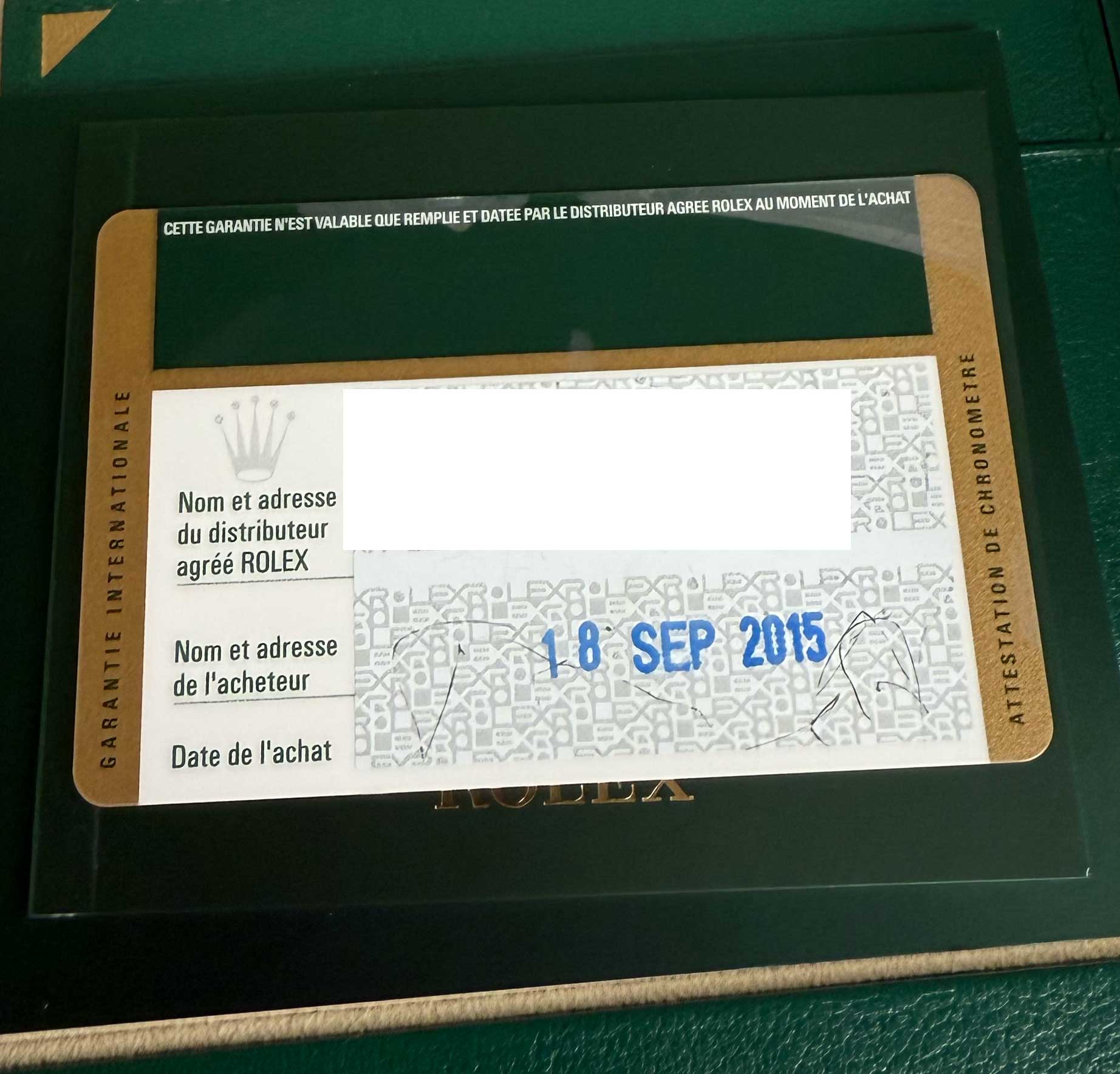 this rolex is in mint unpolished condition and comes with its box, booklets, hang tag, spare links, and warranty card dated september 18th, 2015 as shown in the pictures attached. This watch is in stock and available to ship immediately!