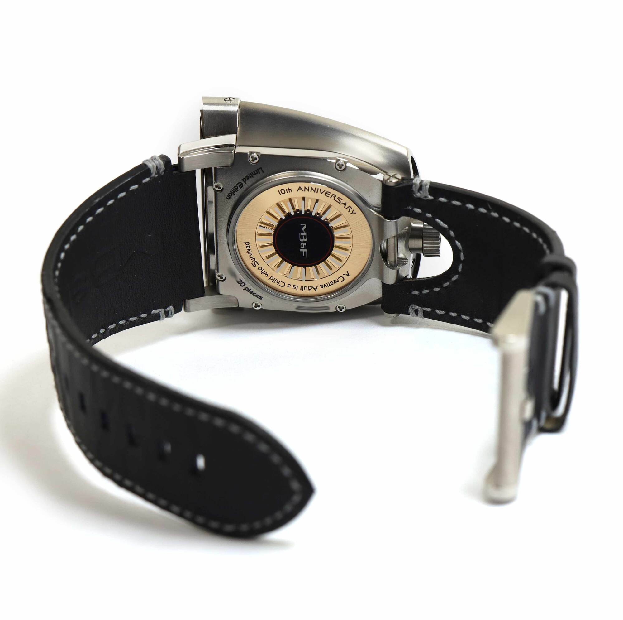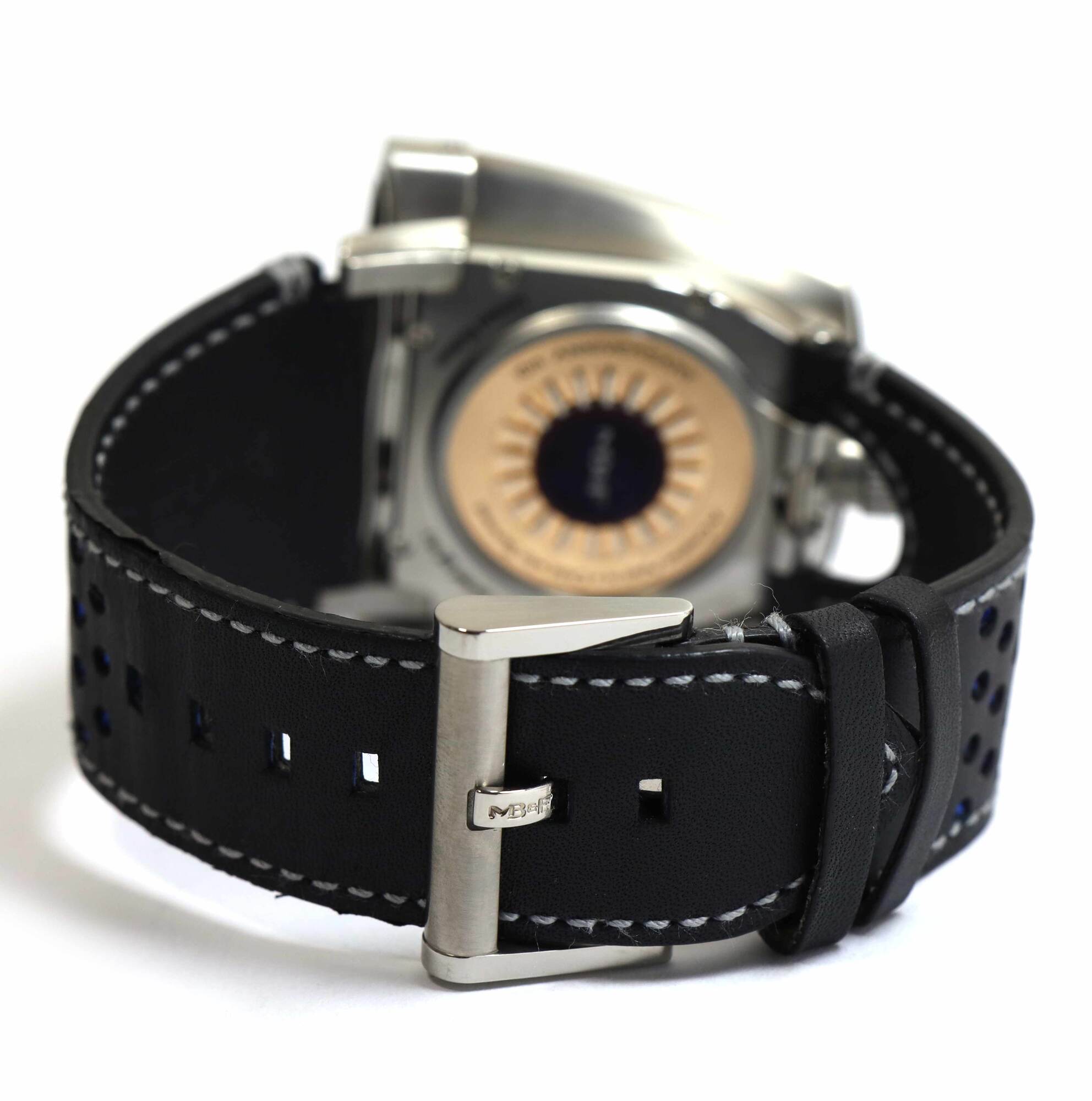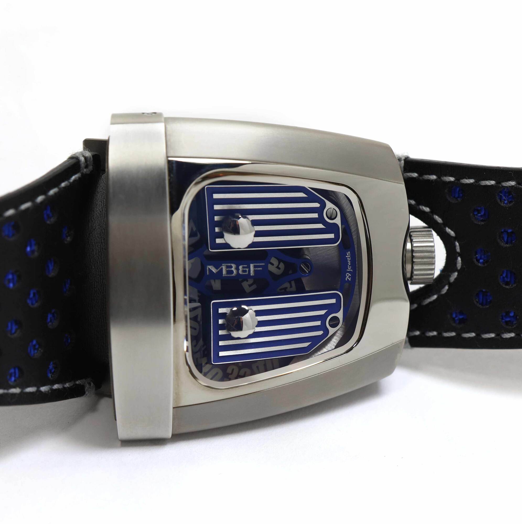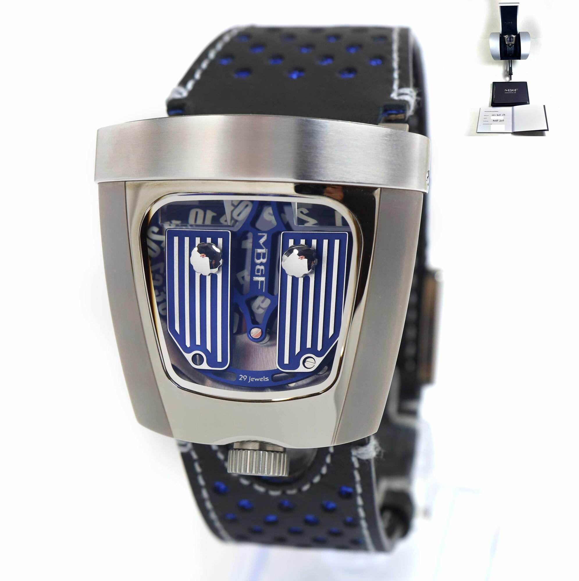 Read Morethis mb&f watch is new old stock and comes with its box, booklets, and warranty card dated august, 2015 as shown in the pictures attached. The hmx is part of a limited edition of only 20 pieces in grade 5 titanium and stainless steel with the blue dial. This watch is one of the most affordable mb&f watches on the current market and is in stock and available to ship immediately!