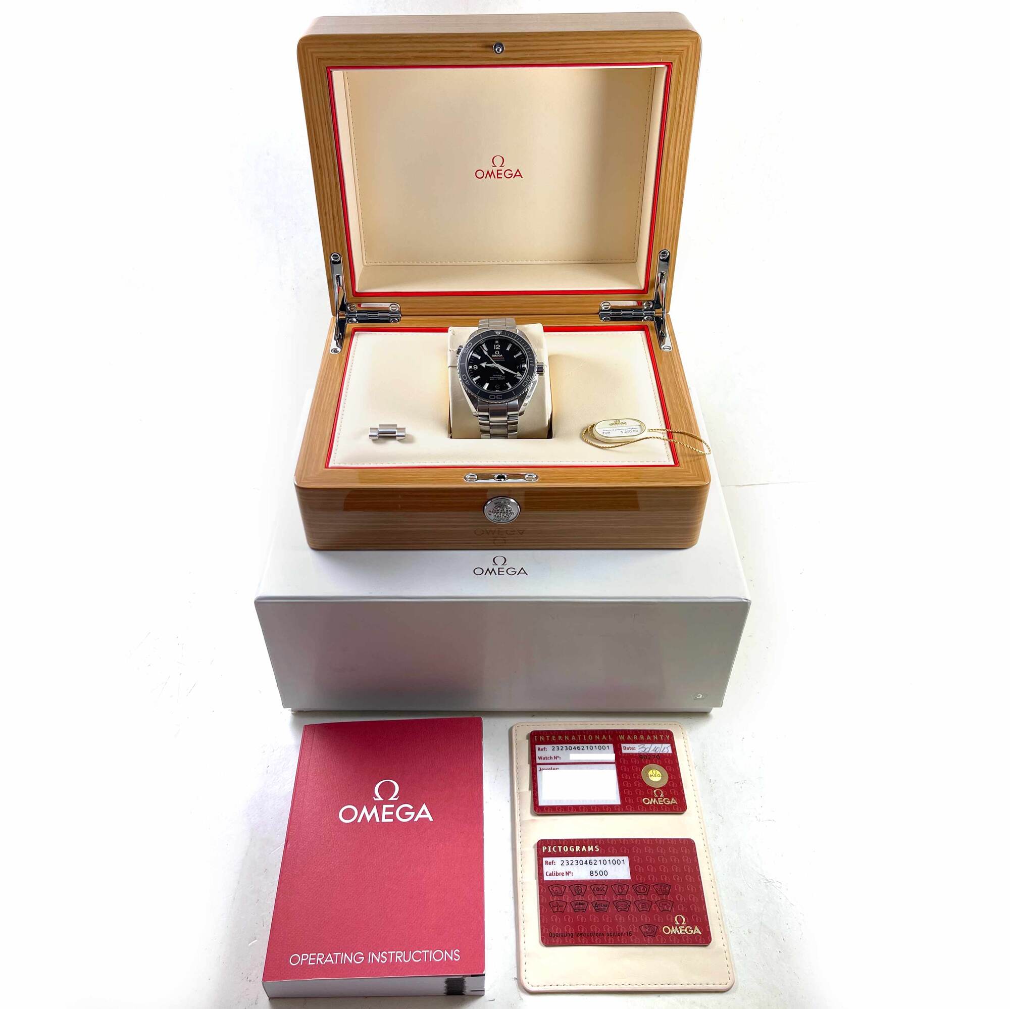 Read Morethis omega watch is in good overall condition showing some signs of wear on the case, bracelet, and buckle consistent with preowned watches. This comes with its box, booklet, hang tag, one additional steel link, and warranty card dated october 30th, 2015. This watch is in stock and available to ship immediately!
