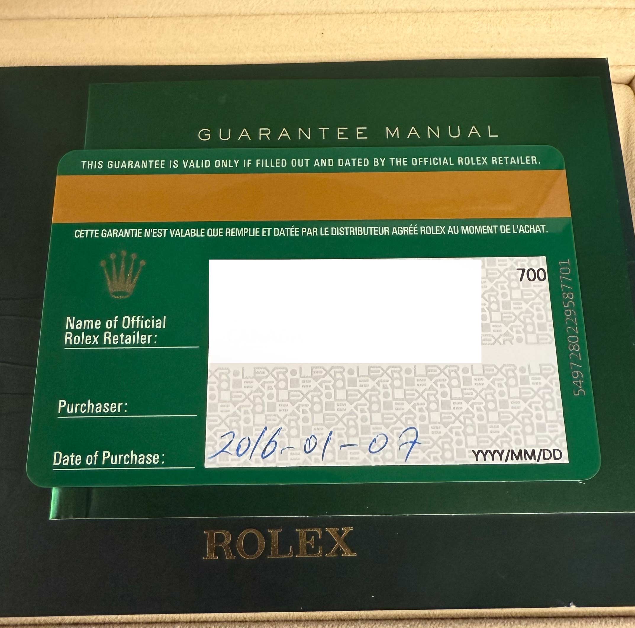 THIS ROLEX IS IN GOOD OVERALL CONDITION SHOWING SOME SIGNS OF WEAR ON THE CASE AND BRACELET CONSISTENT WITH PREOWNED WATCHES. THIS COMES WITH ITS BOX, BOOKLETS, BOTH HANG TAGS, SPARE LINKS, AND WARRANTY CARD DATED JANUARY 7TH, 2016 AS SHOWN IN THE PICTURES ...