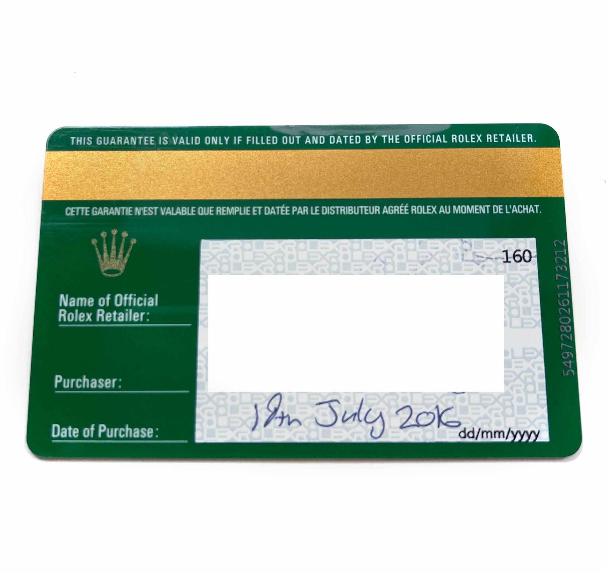 THIS ROLEX IS IN EXCELLENT OVERALL CONDITION AND COMES WITH ITS BOX, BOOKLETS, BOTH HANG TAGS, AND WARRANTY CARD DATED JULY 18TH, 2016 AS SHOWN IN THE PICTURES ATTACHED. THIS WATCH IS IN STOCK AND AVAILABLE TO SHIP IMMEDIATELY!
