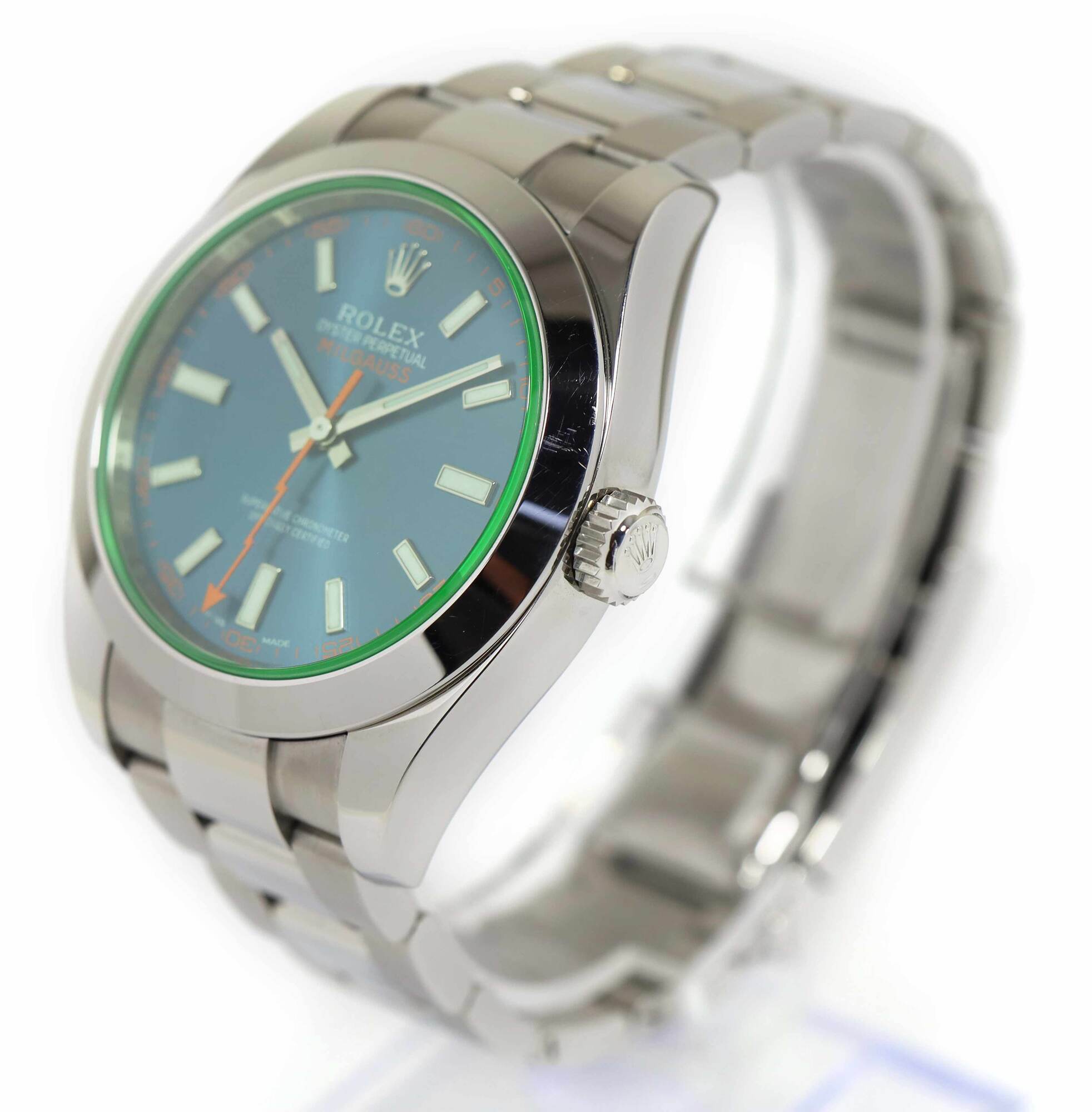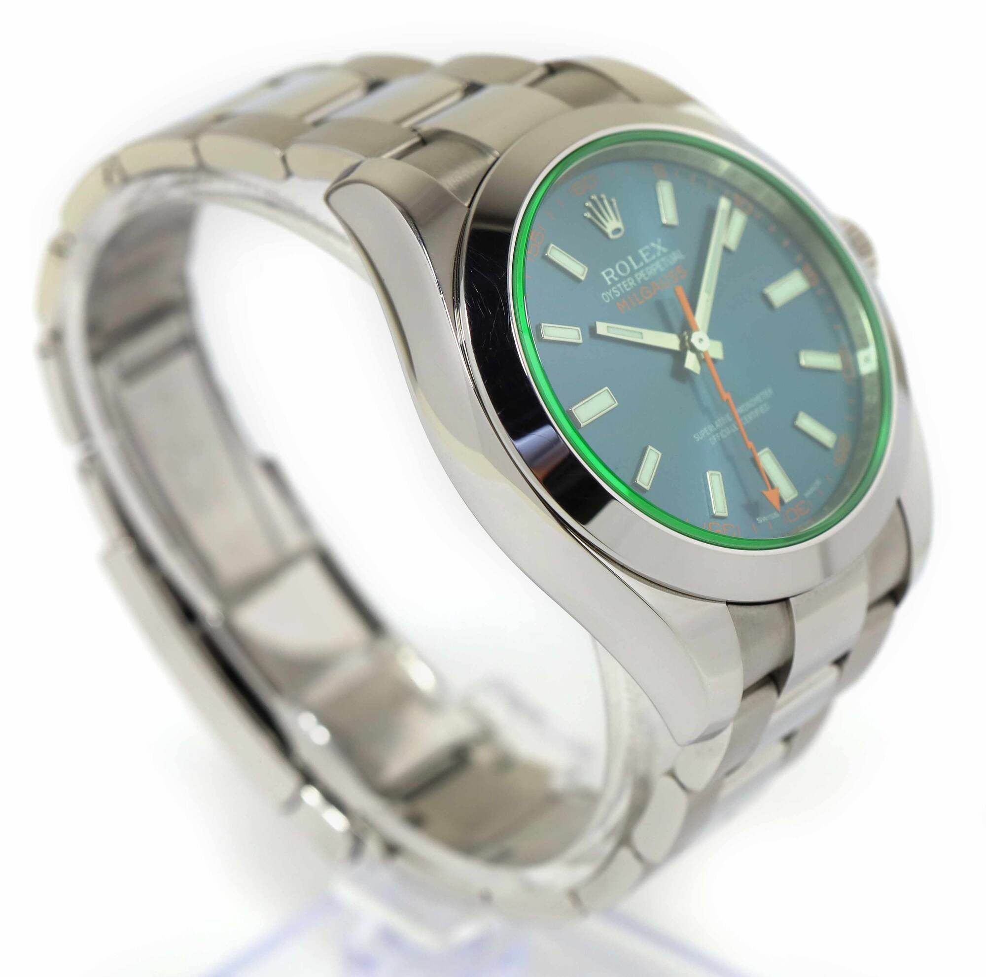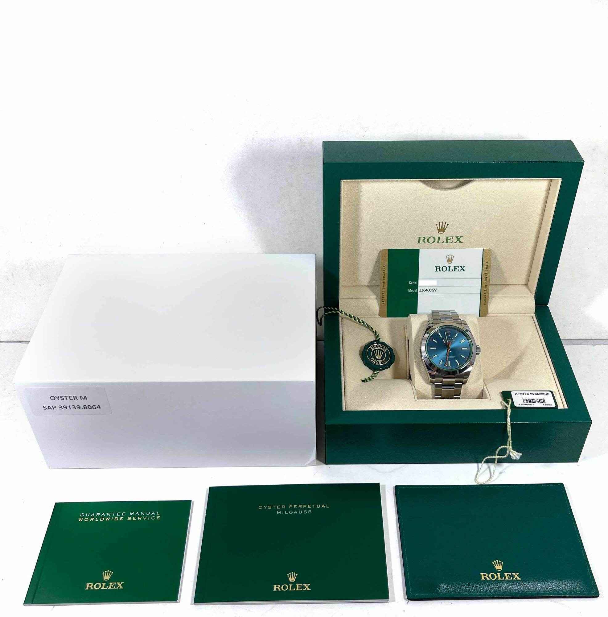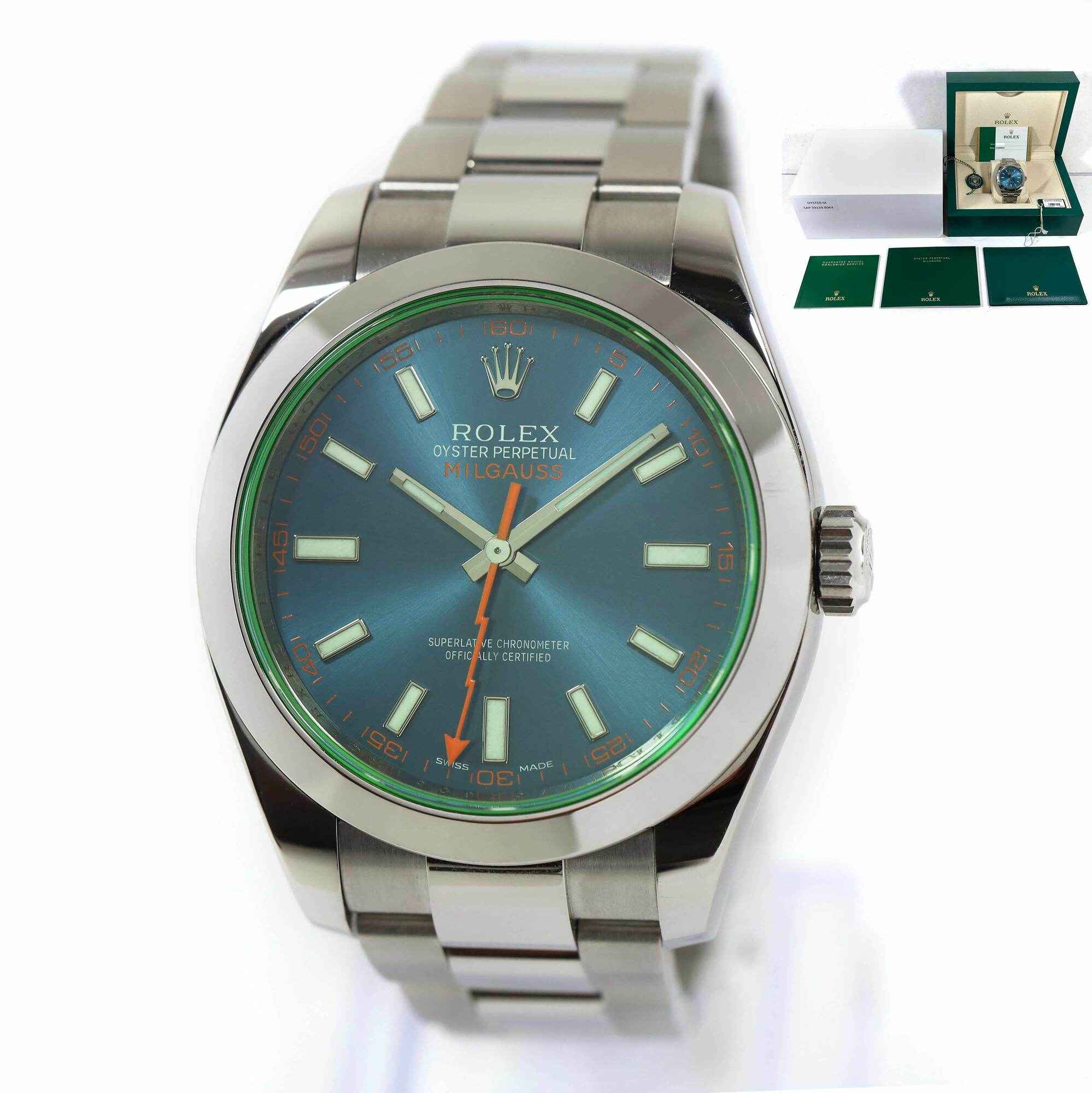Read Moreread all before purchasing! this rolex is in unpolished amazing condition only showing some very minor signs of wear . This comes with its box, booklets, hang tags, and warranty card dated december 10th, 2016 as shown in the pictures attached. The serial number is an m serial, which technically dates this watch to 2007/2008, however the warranty card is dated 2016. Also this warranty card style was not released until 2014. Rolex will replace older style warranty cards on a watch that still remains in a rolex authorized dealer, so it is not uncommon to see an older serial number on a newer style card. Lastly, the blue dial was not released until 2014, however the customer who sold us this watch stated that he had the dial swapped from black to blue from rolex directly. We do not have paperwork proving this, but we can confidently state that the dial is 100% genuine and flawless condition, the hands are flawless, and everything beneath the crystal looks perfect, which does align with this work being done by rolex themself.