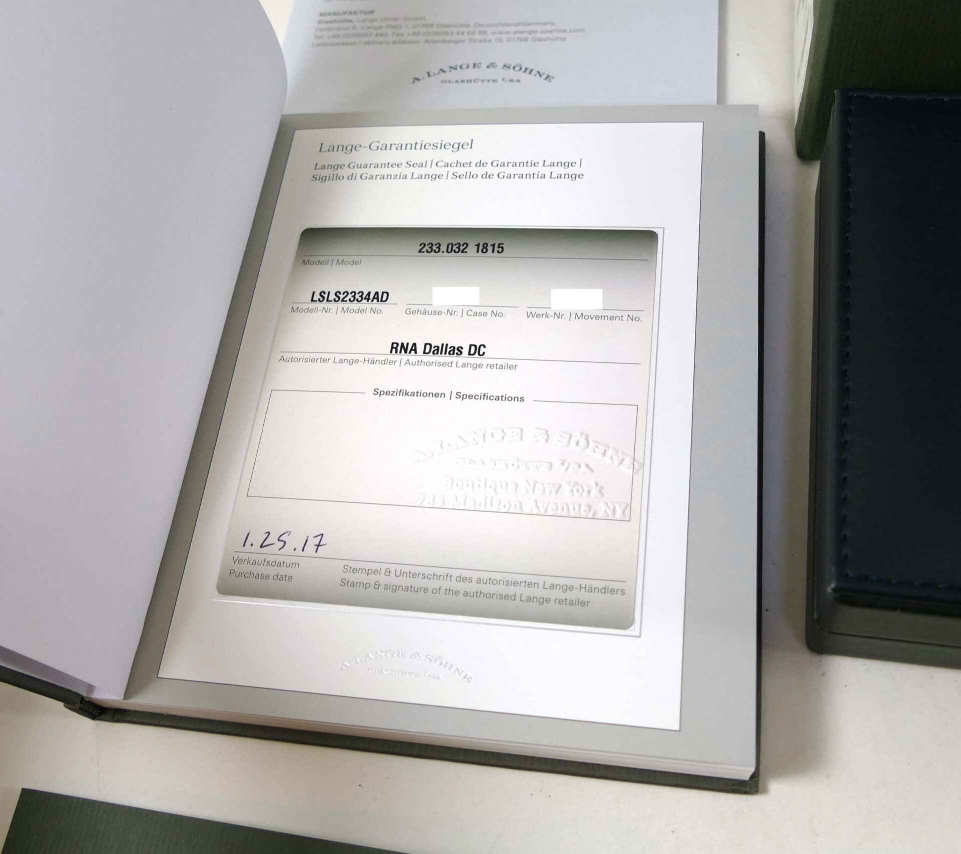 Read Morethis a lange & sohne watch is in super condition and comes with its complete set of box and papers. The original a lange strap is in excellent shape and does not need to be replaced. The paperwork is dated january 2017.