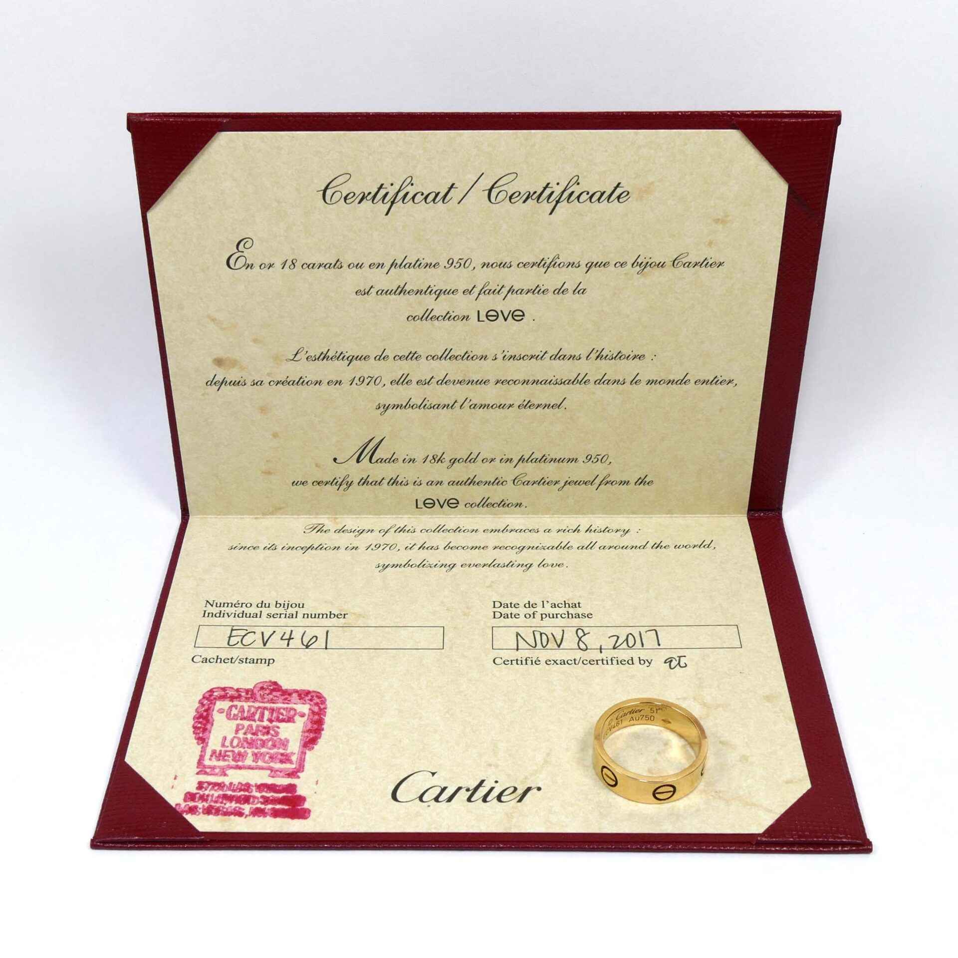 this cartier ring is in excellent condition and comes with its original paperwork as shown in the photos attached. This ring is a size 5.75 and is in stock and available to ship immediately!