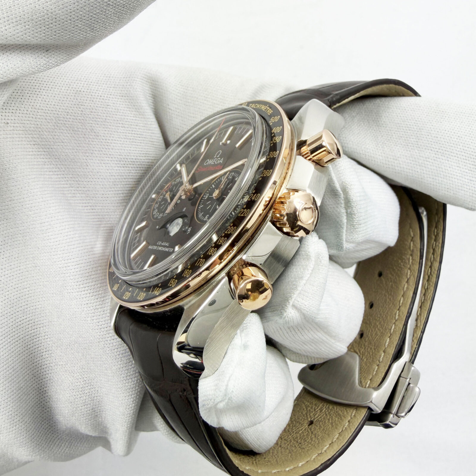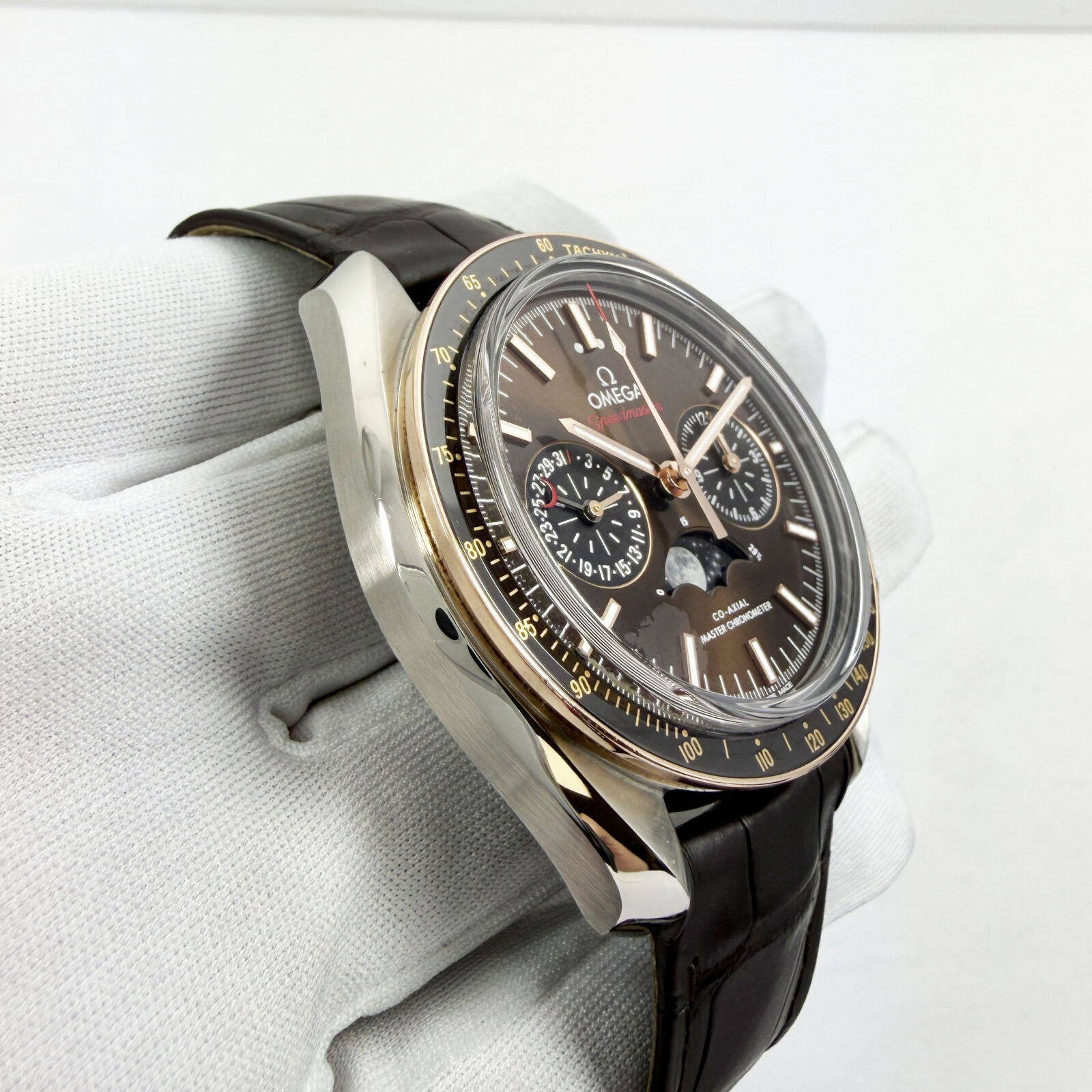 Omega Speedmaster Moonphase 304.23.44.52.13.001 44MM Brown Steel Sedna Gold B/p