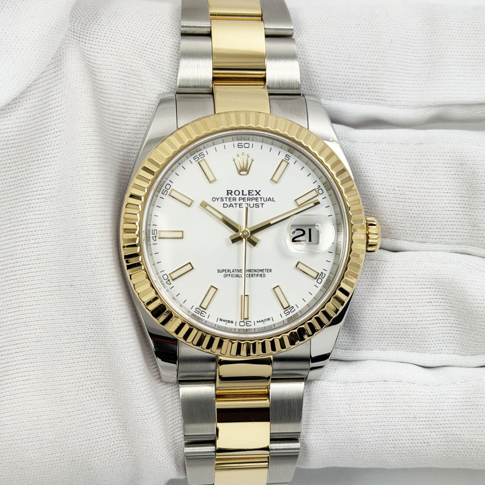 2017 Rolex Datejust 41 126333 Oyster 41MM White Two-Tone Yellow Gold Box Papers