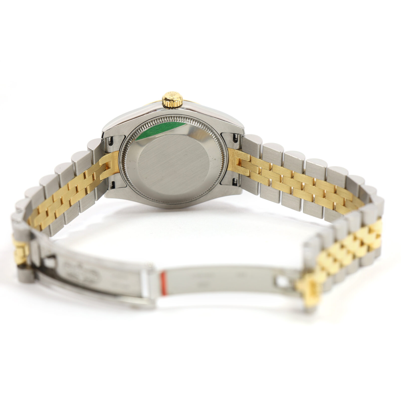 this ladies rolex watch is in excellent overall condition with the original caseback sticker still attached. This comes with its box, booklets, hang tags, and warranty card dated october 26th, 2018 as shown in the pictures attached. This watch is in stock and available to ship immediately!