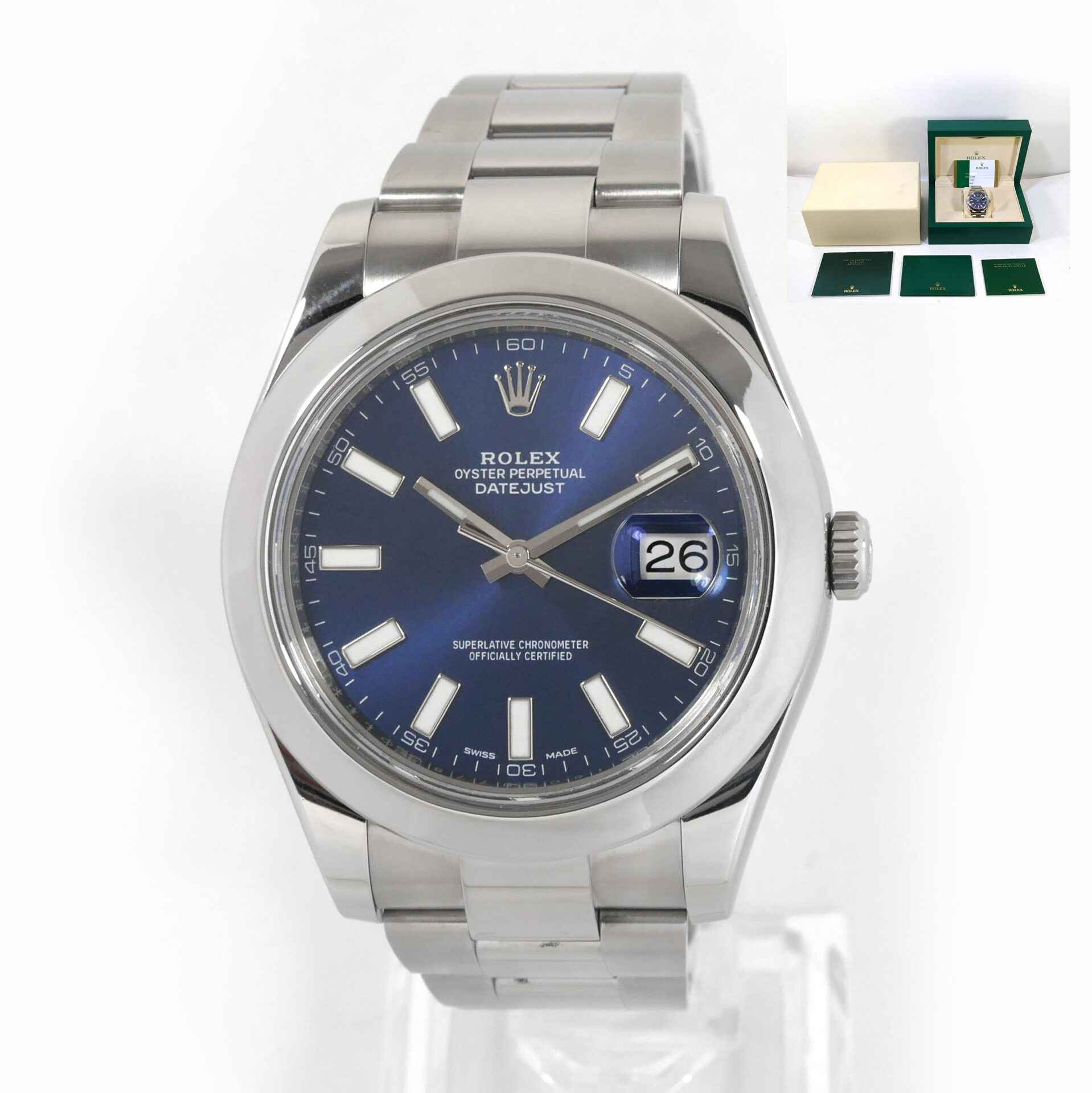 this rolex datejust is in excellent condition and comes with box, papers, and warranty card dated may 2nd, 2018. This watch is in stock and ready to ship immediately!