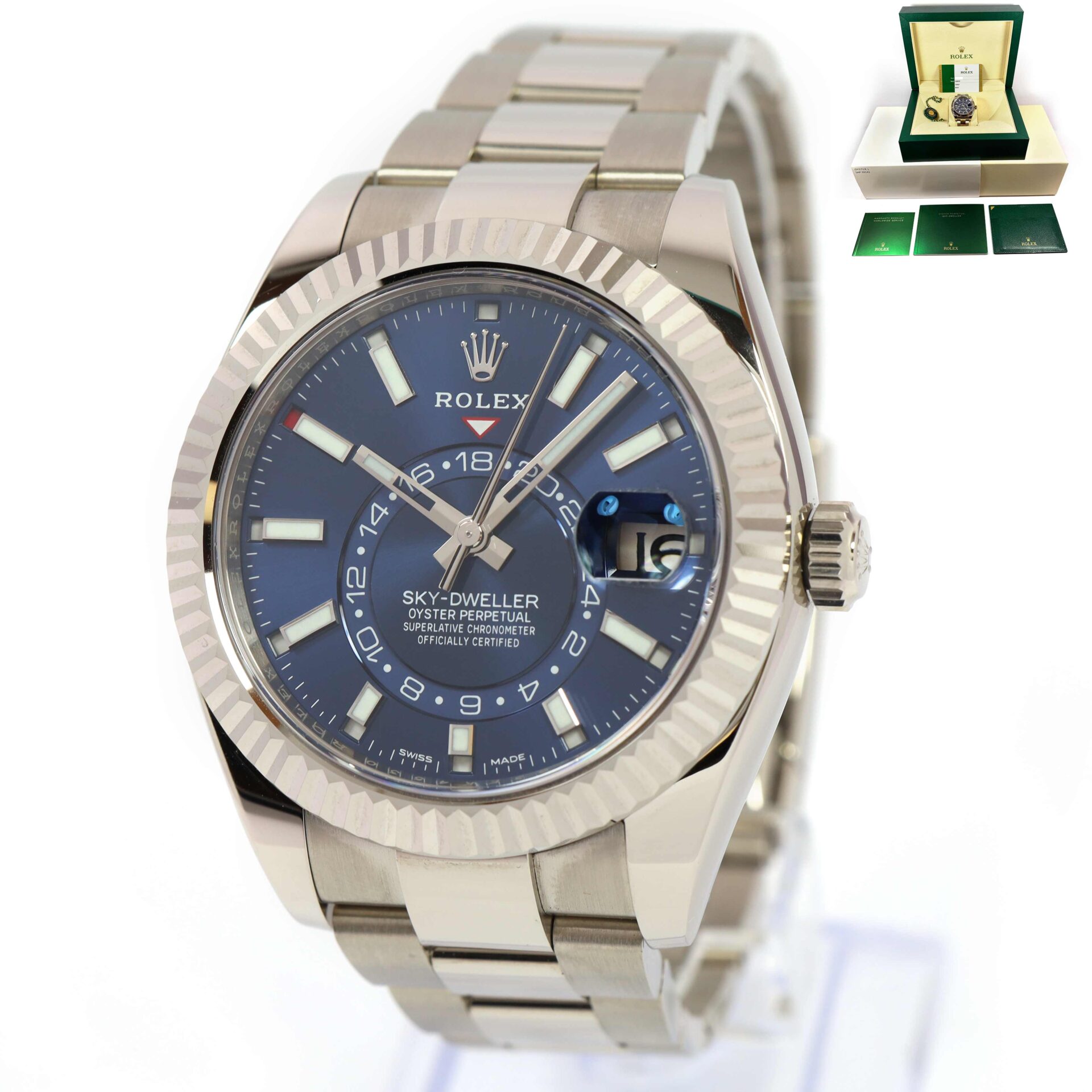 THIS IS POSSIBLY THE RAREST SKY-DWELLER IN EXISTENCE. AT FIRST GLANCE, IT MAY APPEAR TO BE A TYPICAL STAINLESS STEEL VERSION WITH A BLUE DIAL. HOWEVER, THIS IS ACTUALLY A FULL WHITE GOLD VERSION, FEATURING A BLUE DIAL THAT IS ORIGINAL TO THE WATCH, WHICH CA...