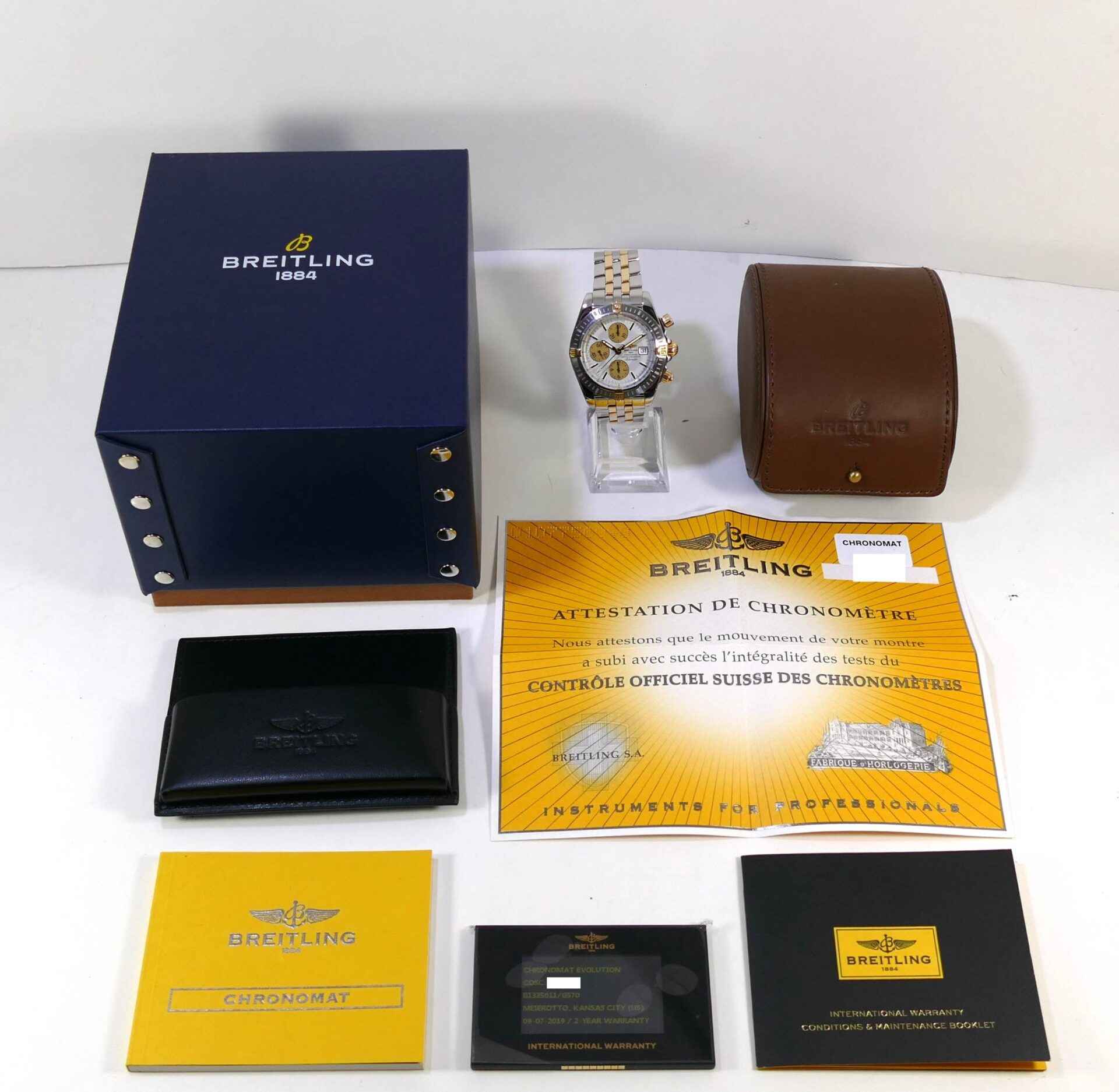 this breitling is in excellent shape and comes with its box, papers, and warranty card dated september 7th, 2019. This watch is in stock and ready to ship immediately!