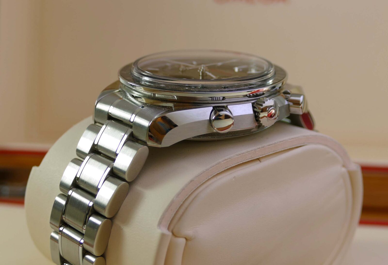 This Omega watch is in excellent condition and comes with its original box and paperwork. The outer white cardboard box is missing. The warranty card is dated September 2019.