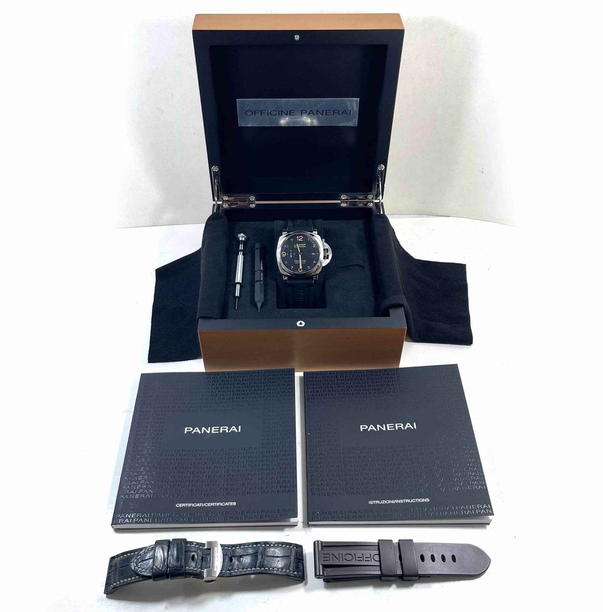 Read Morethis panerai is in excellent condition and comes with its box, booklets, panerai tools, one additional panerai brown rubber strap, one additional aftermarket leather strap, and warranty paper dated february 14th, 2019. This watch is in stock and available to ship immediately!