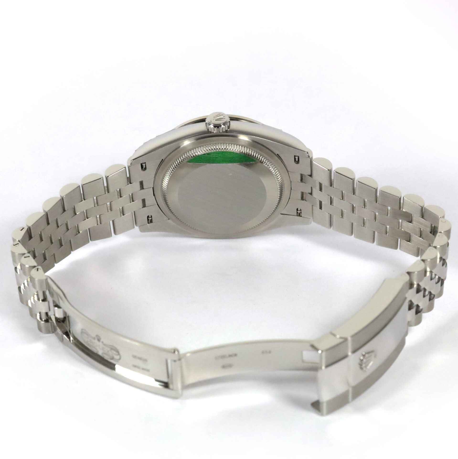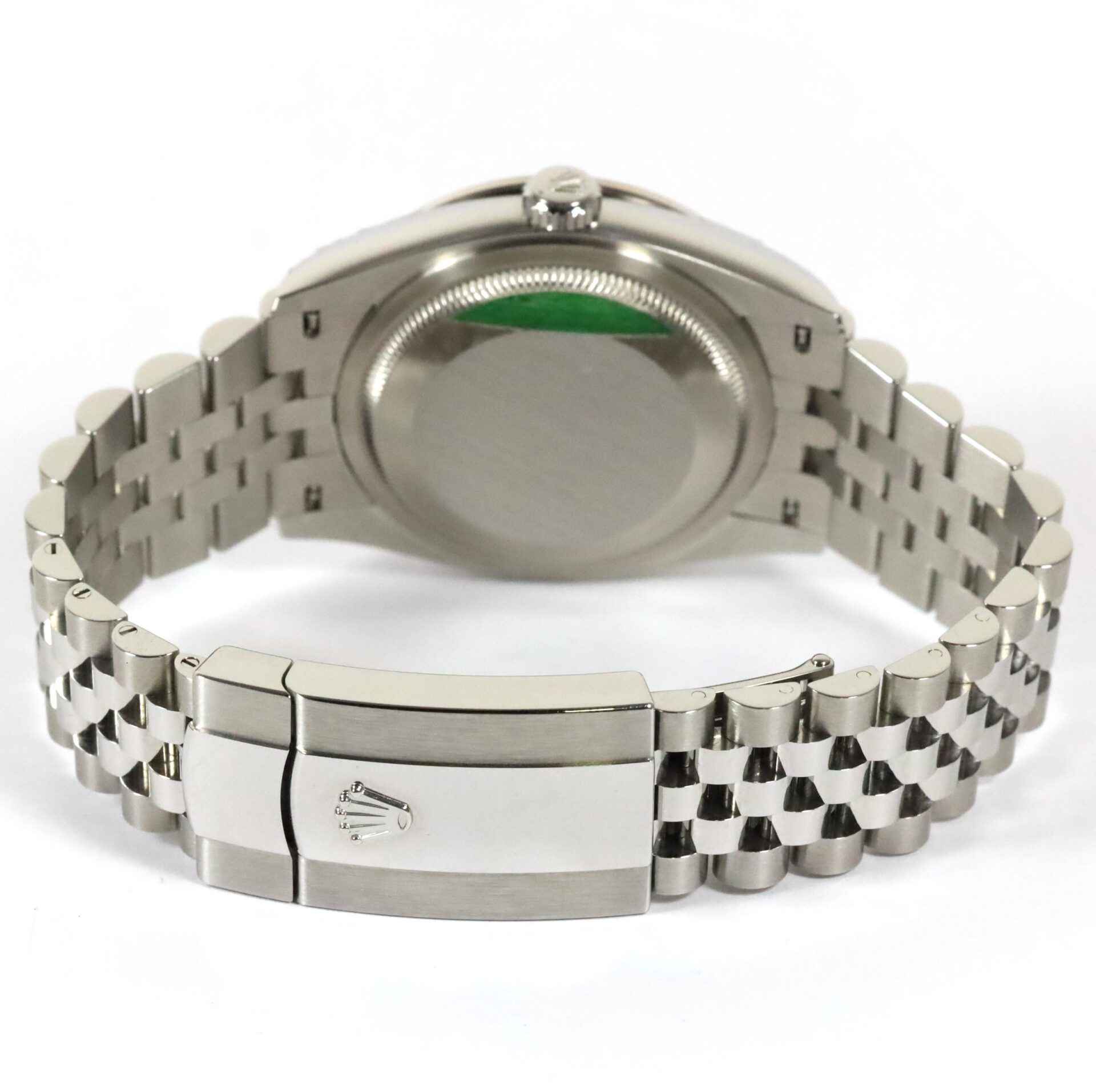 this rolex is in excellent condition and comes with box, papers, hang tags, and warranty card dated november 2019. This watch features an aubergine dial with factory diamonds and a factory diamond bezel on a stainless steel jubilee band. This watch is in stock and available to ship immediately!