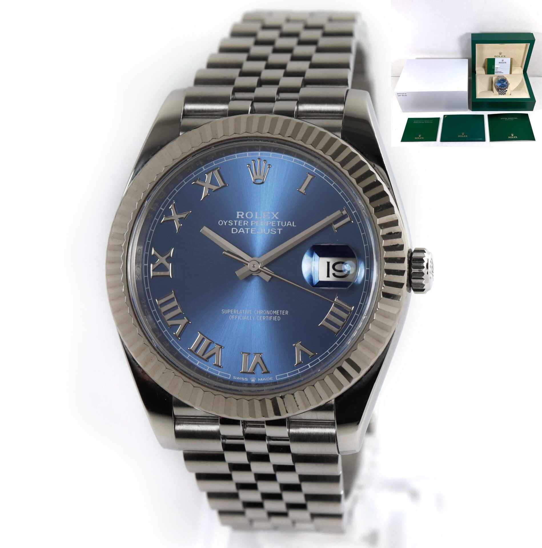 this rolex is in excellent condition and comes with its box, papers, and warranty card dated november 5th, 2019. This watch is in stock and available to ship immediately!