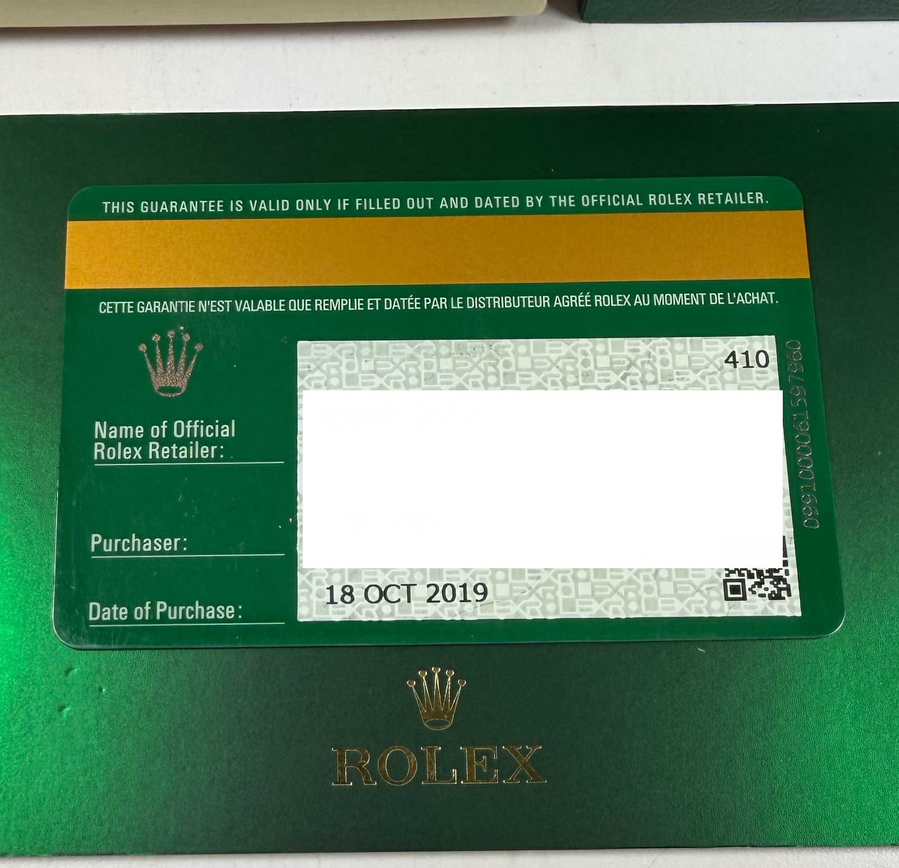 Read Morethis rolex is in excellent overall condition showing some signs of surface wear consistent with preowned watches. This comes with its box, booklets, hang tag, and warranty card dated october 18th, 2019 as shown in the pictures attached. This watch is in stock and available to ship immediately!