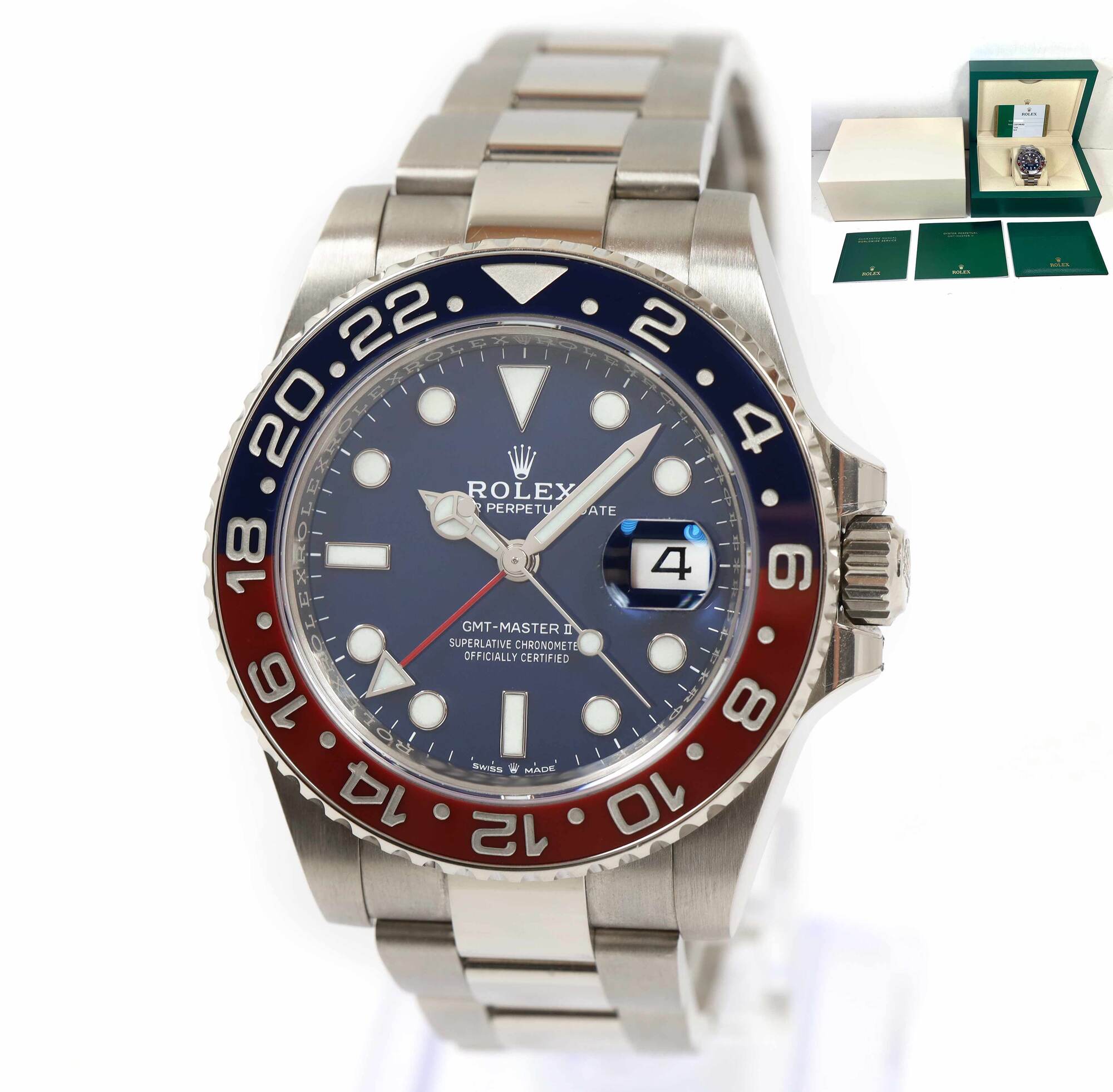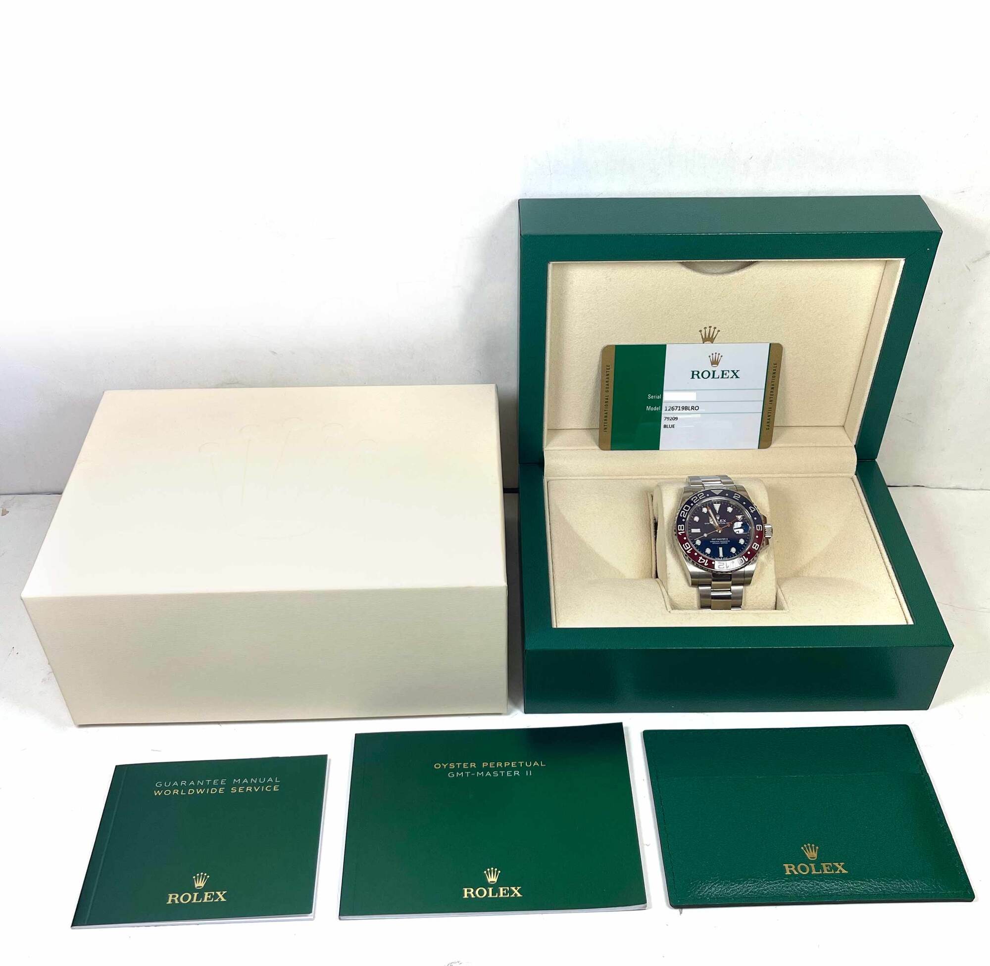 THIS ROLEX IS IN EXCELLENT CONDITION AND COMES WITH ITS BOX, BOOKLETS, AND WARRANTY CARD DATED JUNE 27TH, 2019 AS SHOWN IN THE PICTURES ATTACHED. THIS WATCH IS IN STOCK AND AVAILABLE TO SHIP IMMEDIATELY!