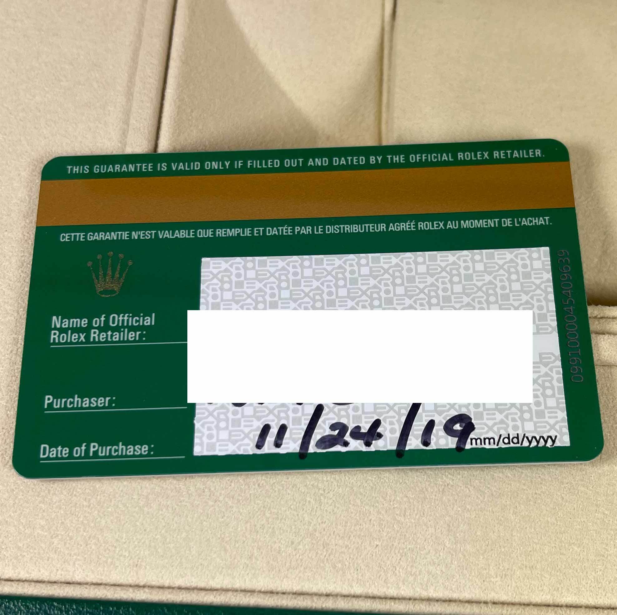 this rolex is unworn and comes with its box, booklets, bezel protector, both hang tags, and warranty card dated november 24th, 2019 as shown in the pictures attached. This rolex is 100% factory original and is in stock and available to ship immediately!