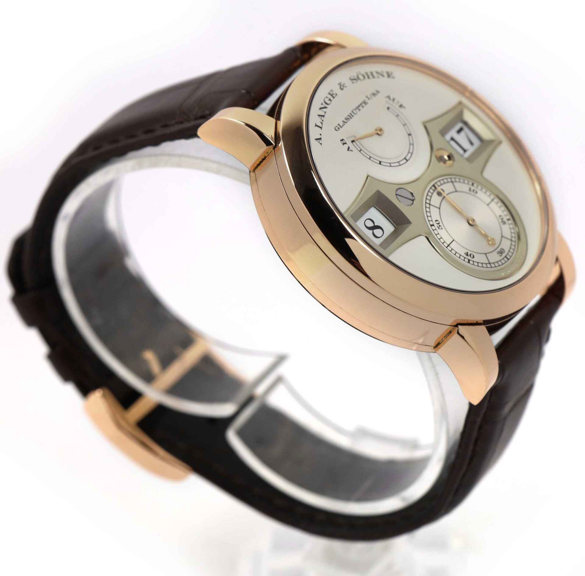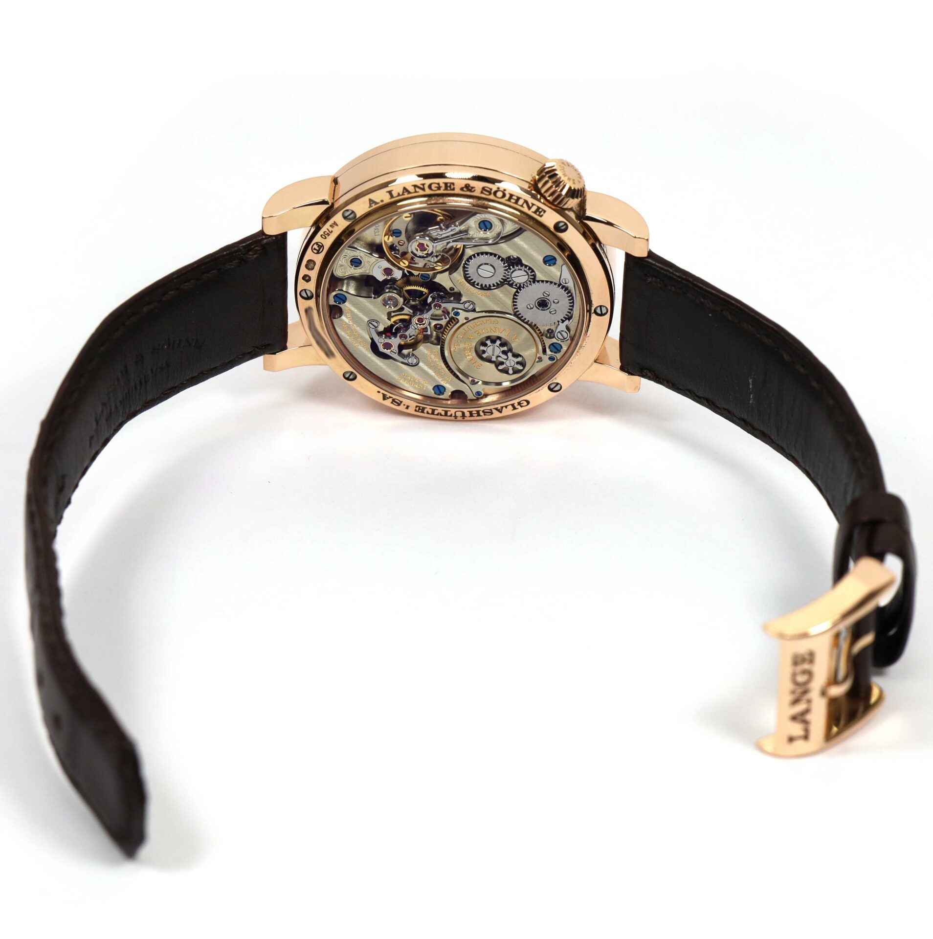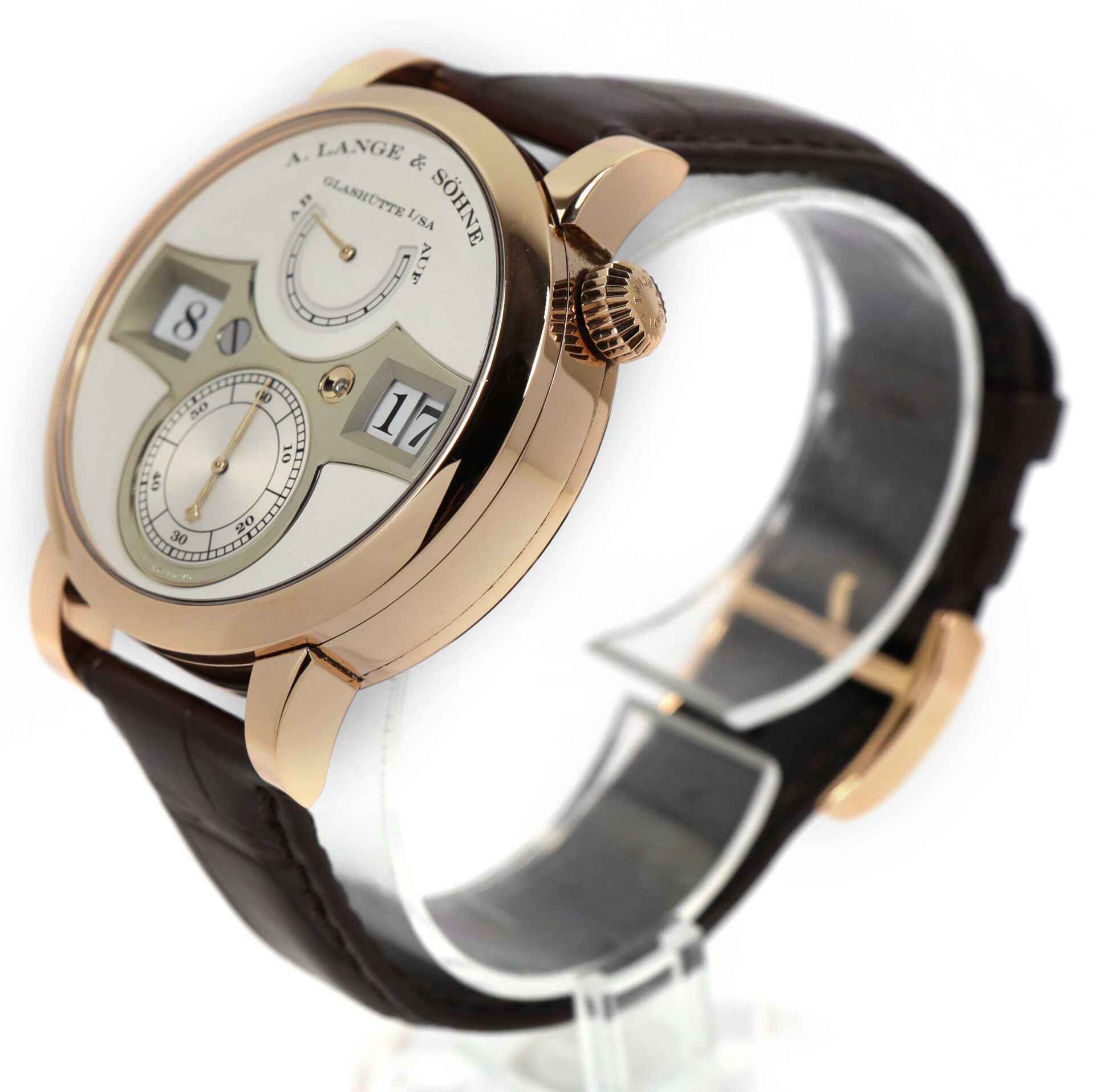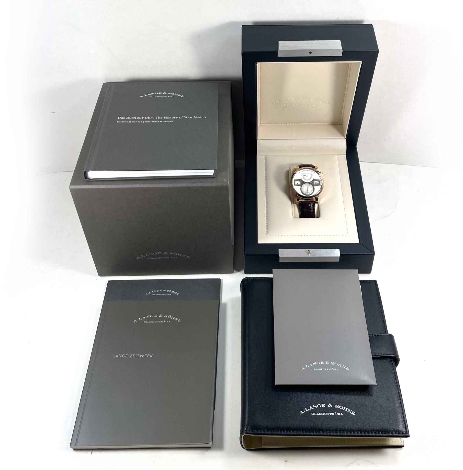 This A. Lange watch is in excellent condition and comes with its box, papers, A. Lange branded microfiber cloth, and warranty booklets dated June 6th, 2020 as shown in the photos attached. This A. Lange features a rose g...