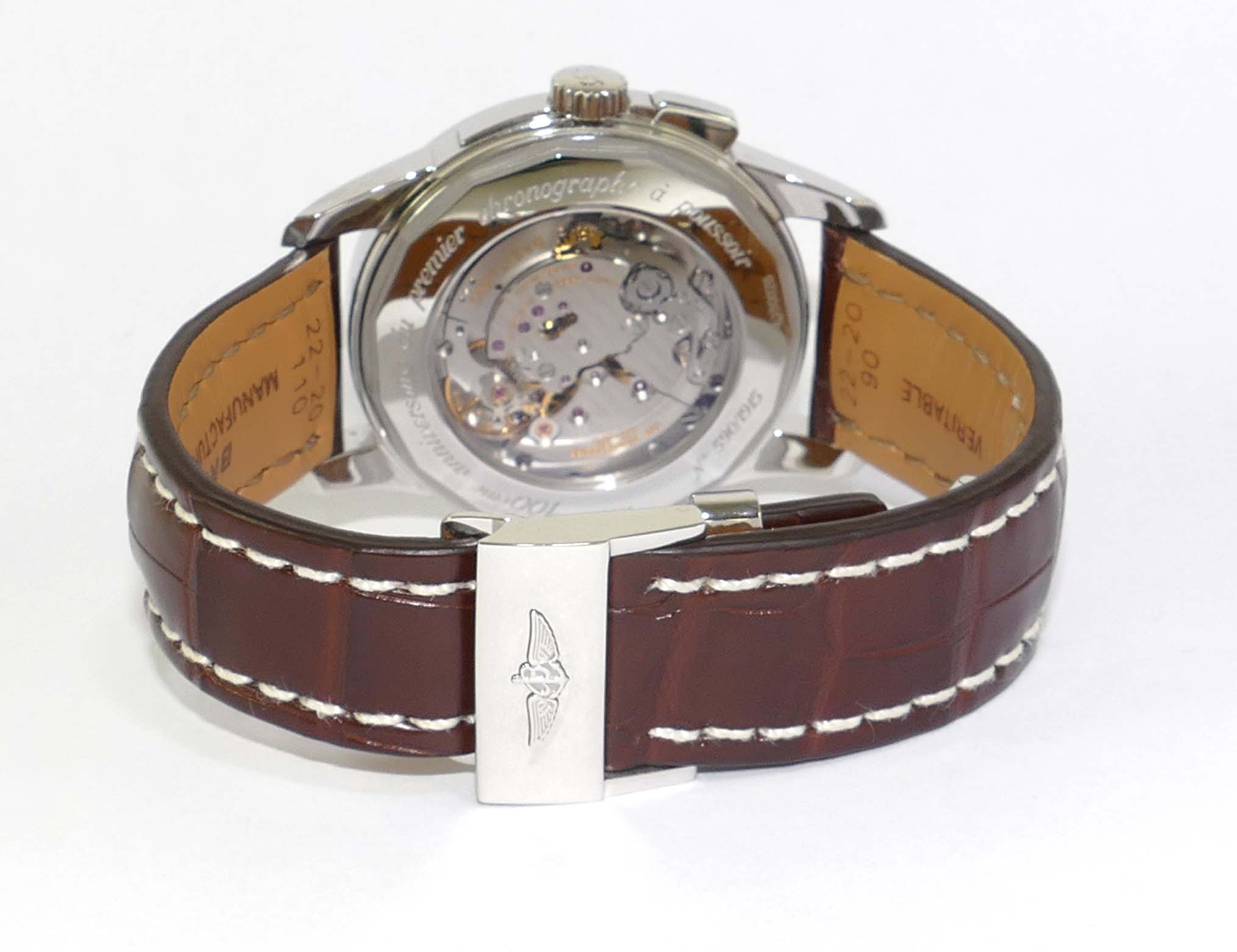 this watch is in near-mint condition and comes with its original box and papers. The warranty card is dated march 9th, 2020 and has a 5 year factory warranty from that date. This watch features a unique monopusher chronograph.