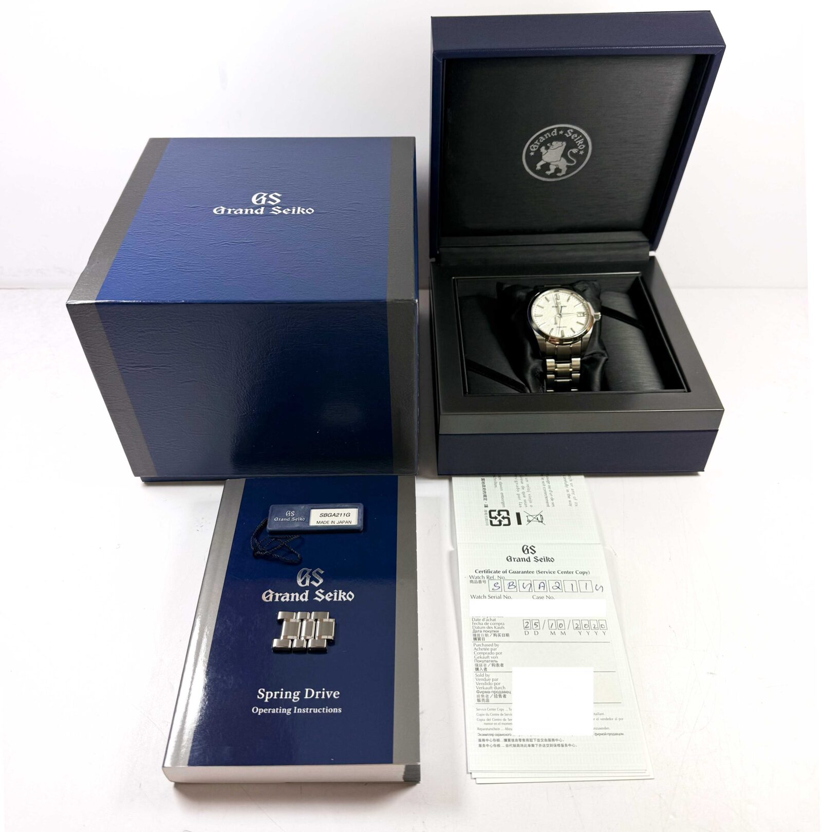 this grand seiko watch is in excellent overall condition and comes with its box, booklet, hang tag, and warranty paper dated october 25th, 2020 as shown in the pictures attached. This watch is in stock and available to ship immediately!