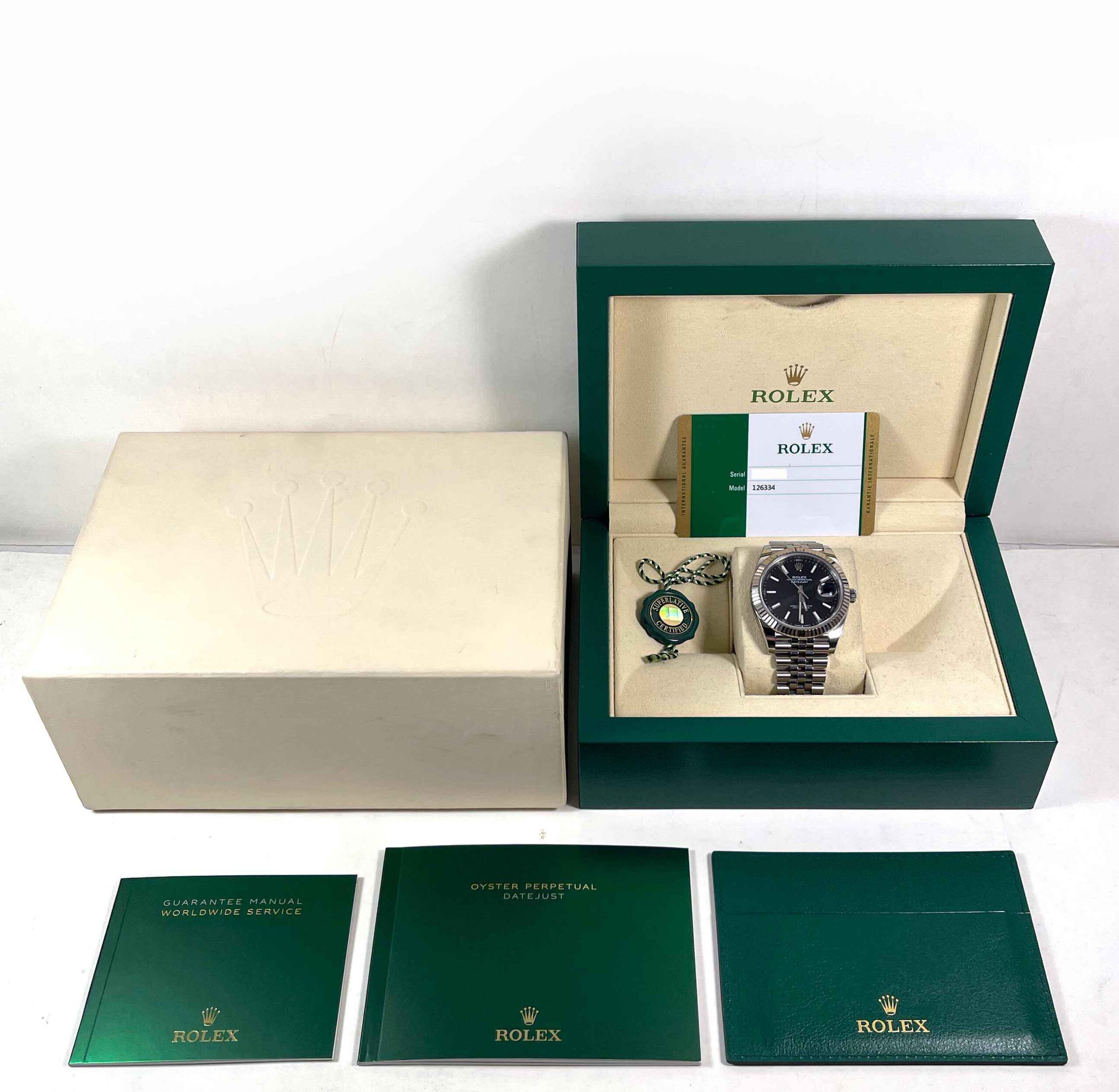 Read Morethis rolex is in excellent condition and still has the green sticker on the caseback. This watch comes with its box, papers, hang tag, and warranty card dated january 1st, 2020. This watch features a stainless steel case surrounding a black dial and comes on a steel jubilee bracelet. This watch is in stock and available to ship immediately!