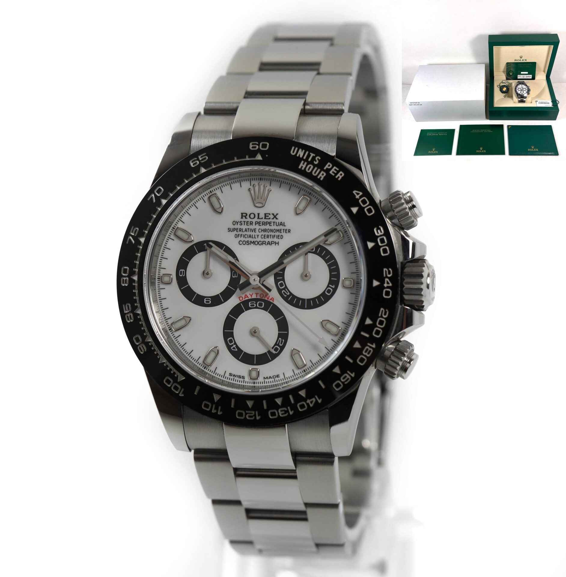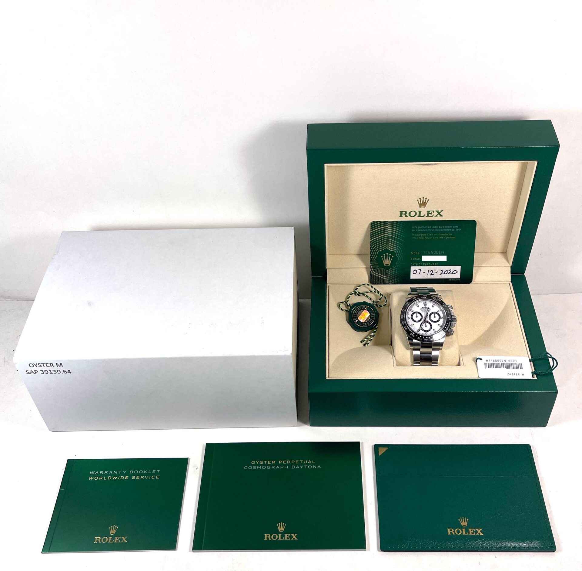 this rolex is in excellent condition and comes with its box, papers, hang tags, and warranty card dated december 7th, 2020. This watch is in stock and available to ship immediately!