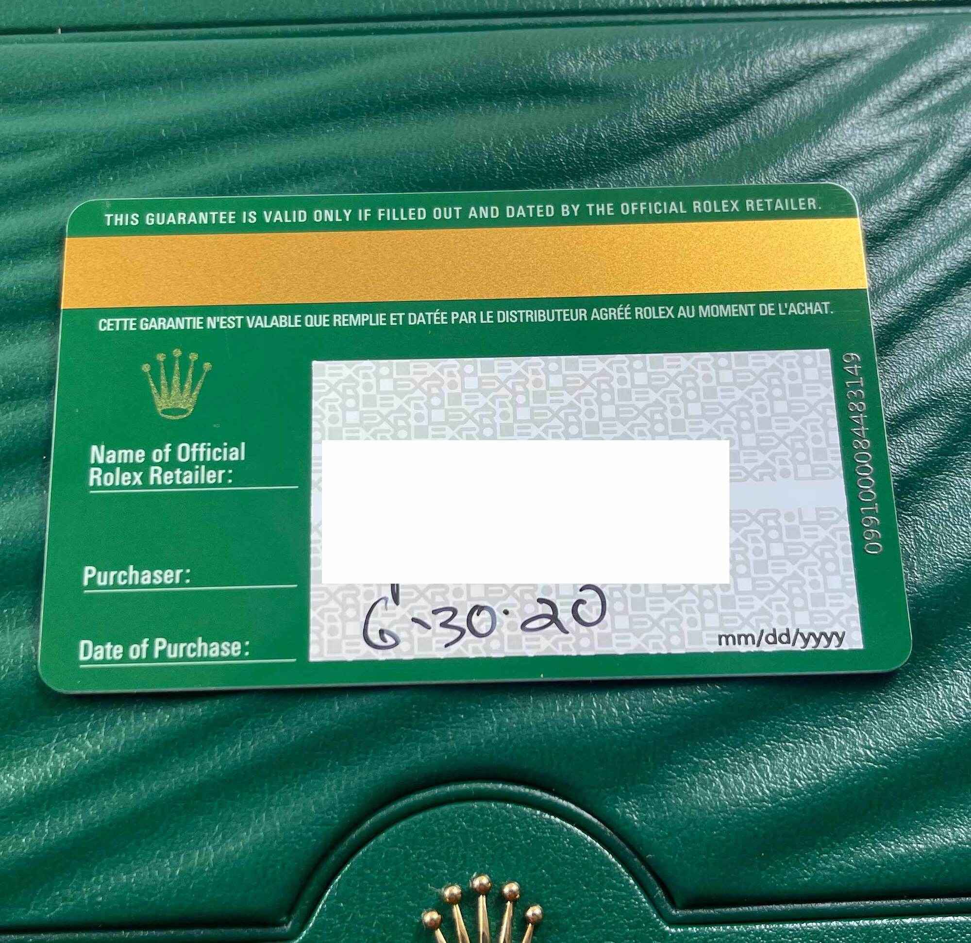 THIS ROLEX IS IN EXCELLENT CONDITION AND COMES WITH ITS BOX, BOOKLETS, BEZEL PROTECTOR, BOTH HANG TAGS, AND WARRANTY CARD DATED JUNE 30TH, 2020 AS SHOWN IN THE PICTURES ATTACHED. THIS WATCH IS IN STOCK AND AVAILABLE TO SHIP IMMEDIATELY!