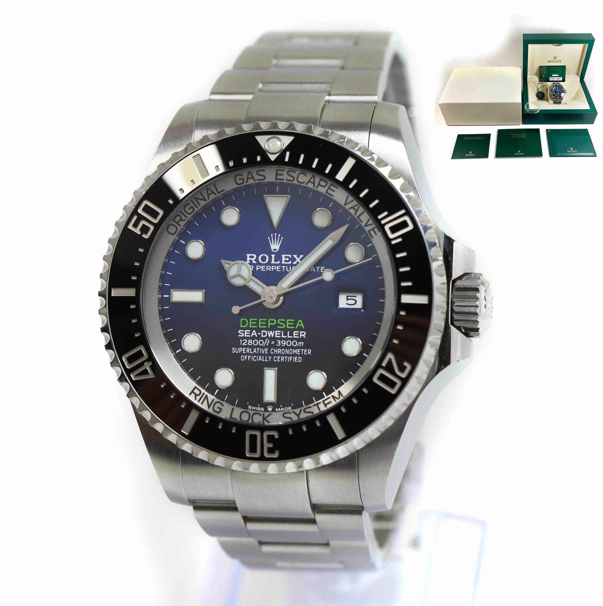 THIS WATCH IS IN EXCELLENT CONDITION SHOWING SOME MINOR SIGNS OF SURFACE WEAR CONSISTENT WITH PREOWNED WATCHES. THERE IS SOME LIGHT SCRATCHES ON THE CASEBACK LUGS AS SHOWN IN THE PICTURES ATTACHED. THIS COMES WITH ITS BOX, BOOKLETS, GREEN HANG TAG, BEZEL PR...