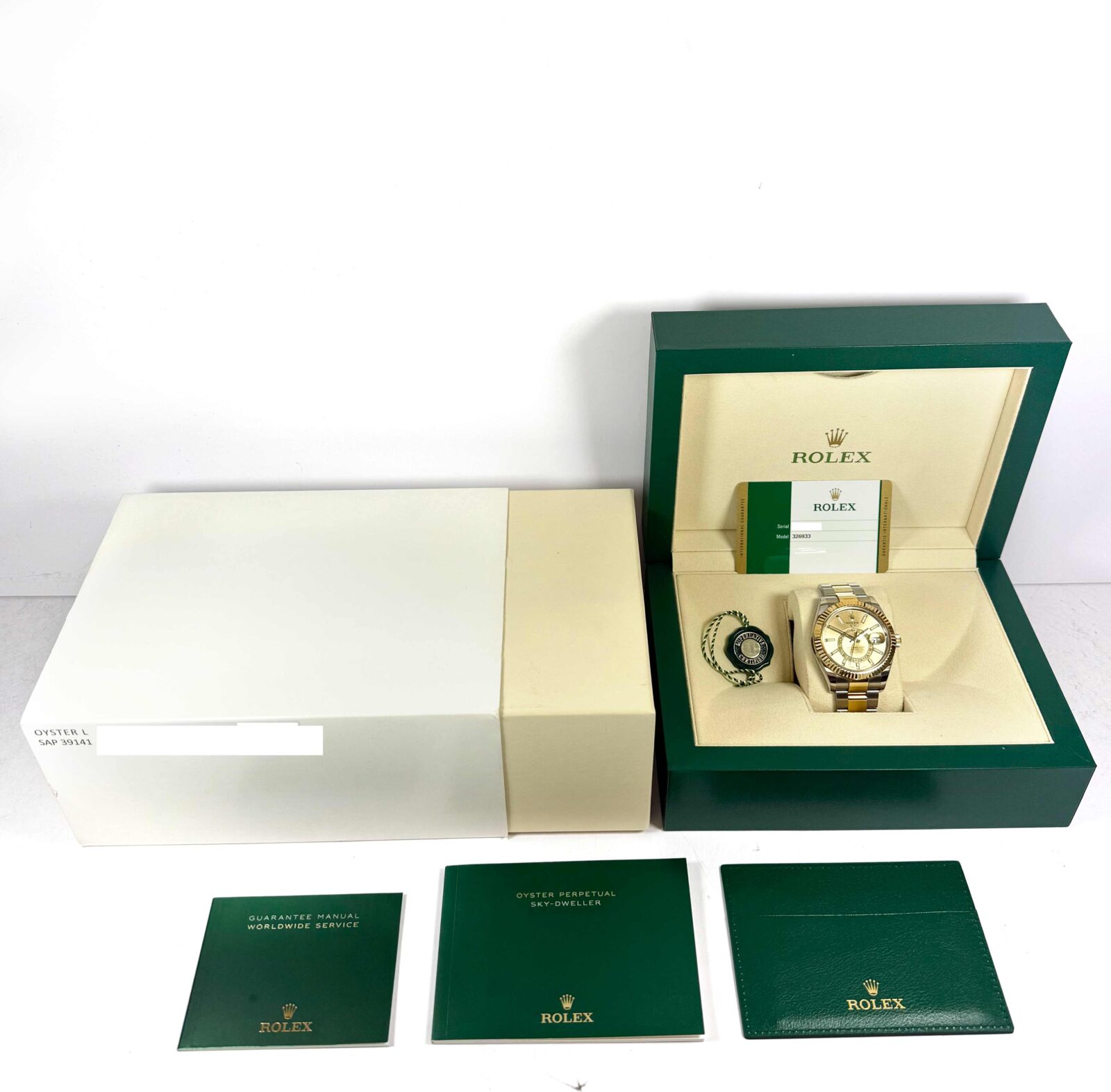 Read Morethis rolex sky-dweller is in excellent overall condition showing some signs of surface wear consistent with preowned watches. This comes with its box, booklets, green hang tag, and warranty card dated march 14th, 2020 as shown in the pictures attached. This watch is in stock and available to ship immediately!