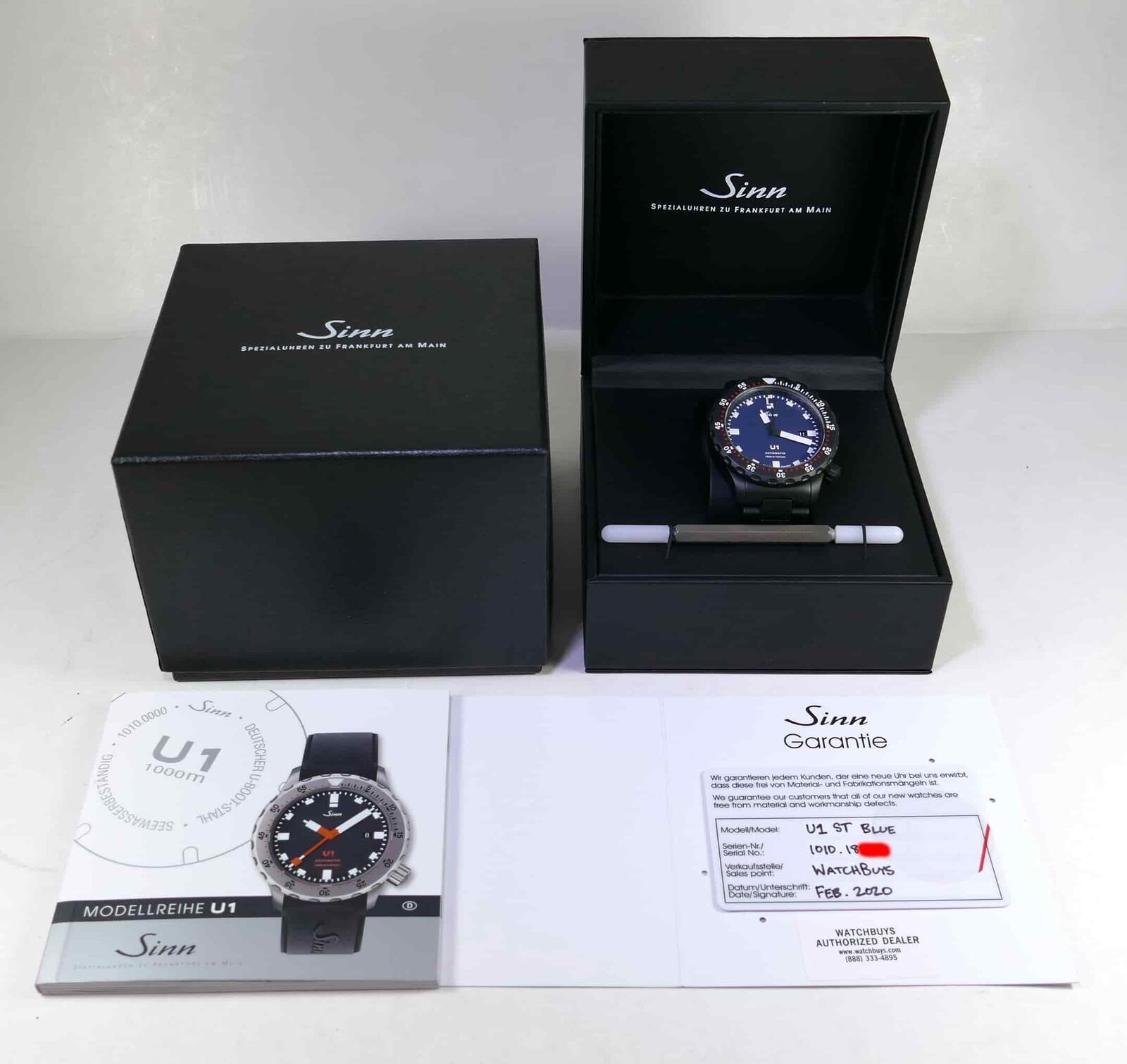 this sinn watch is in excellent condition and comes with its original box and papers. It comes with all of its original links, and the warranty card is dated february 2020.