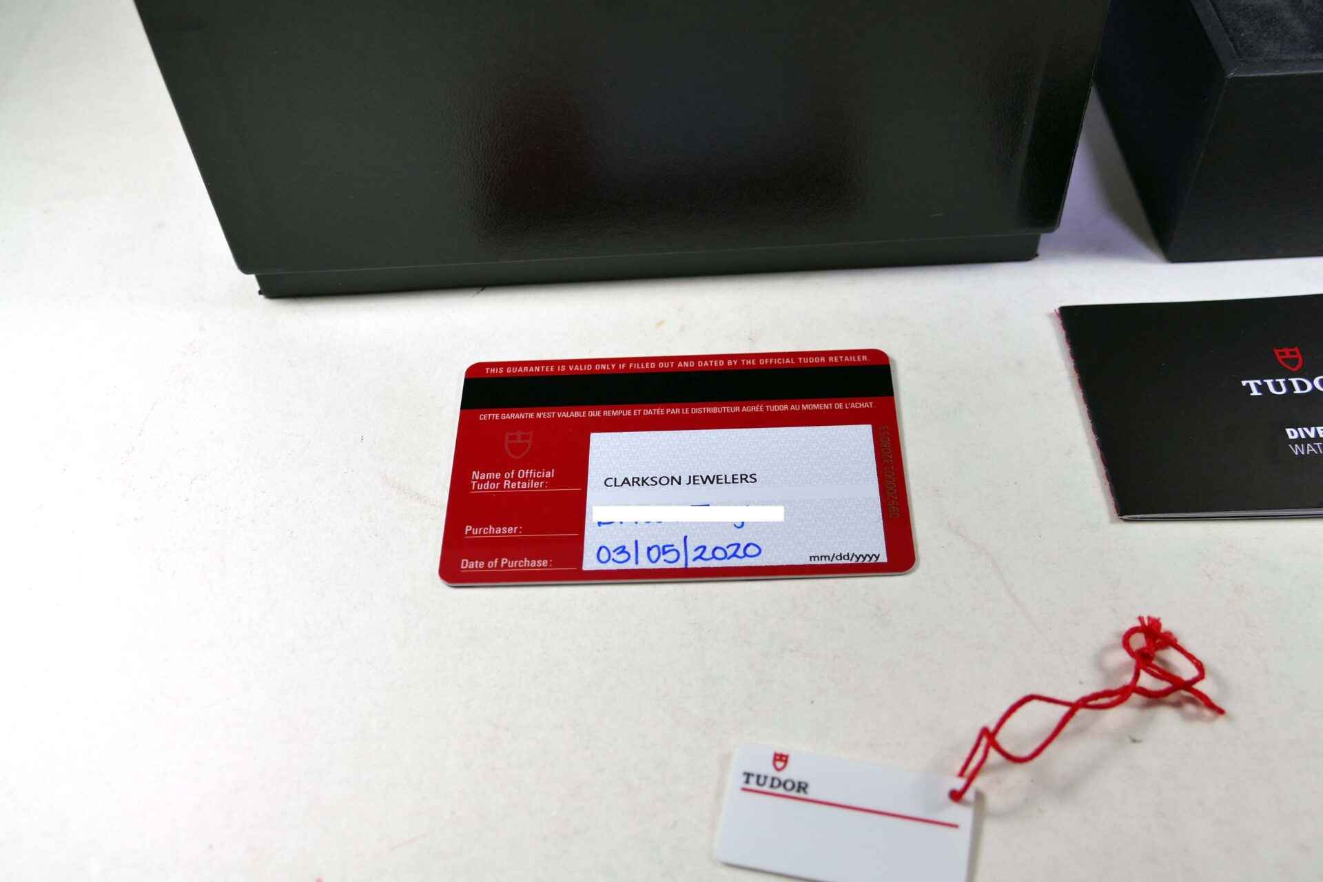 this tudor is excellent and comes with all of its original box, papers, and links. The warranty card is dated 03/05/2020.