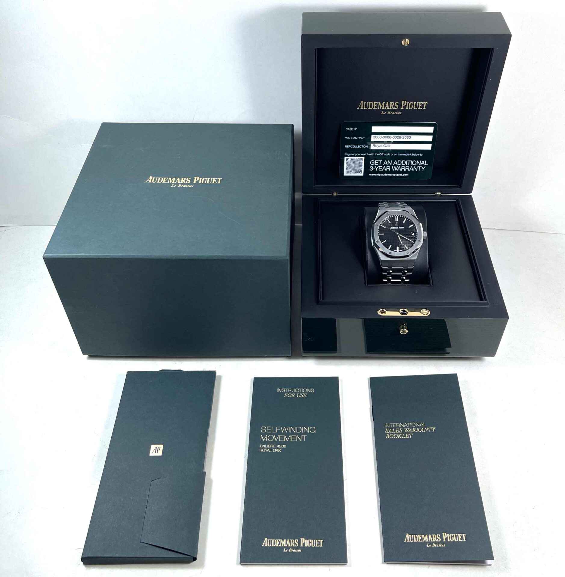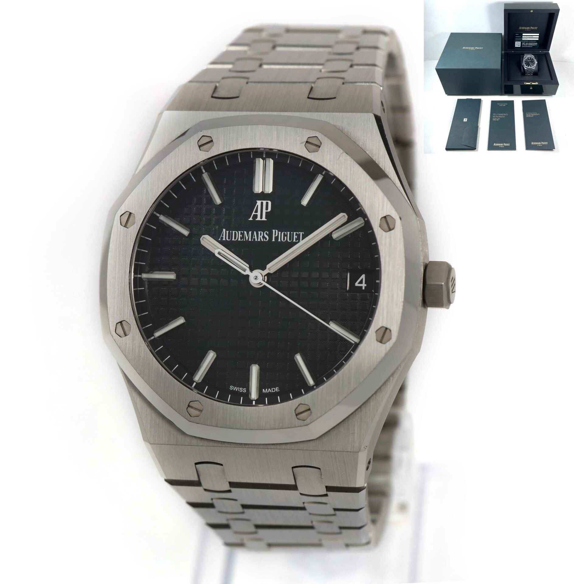 This Audemars Piguet is in excellent condition and comes with its box, papers, and warranty card as shown in the pictures attached. This watch is in stock and available to ship immediately!