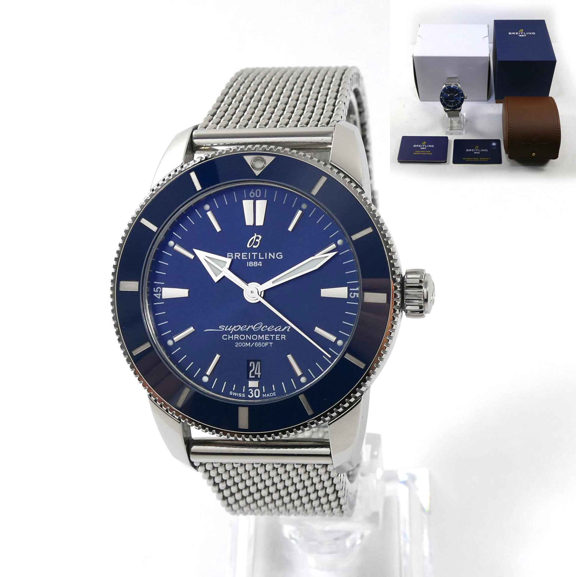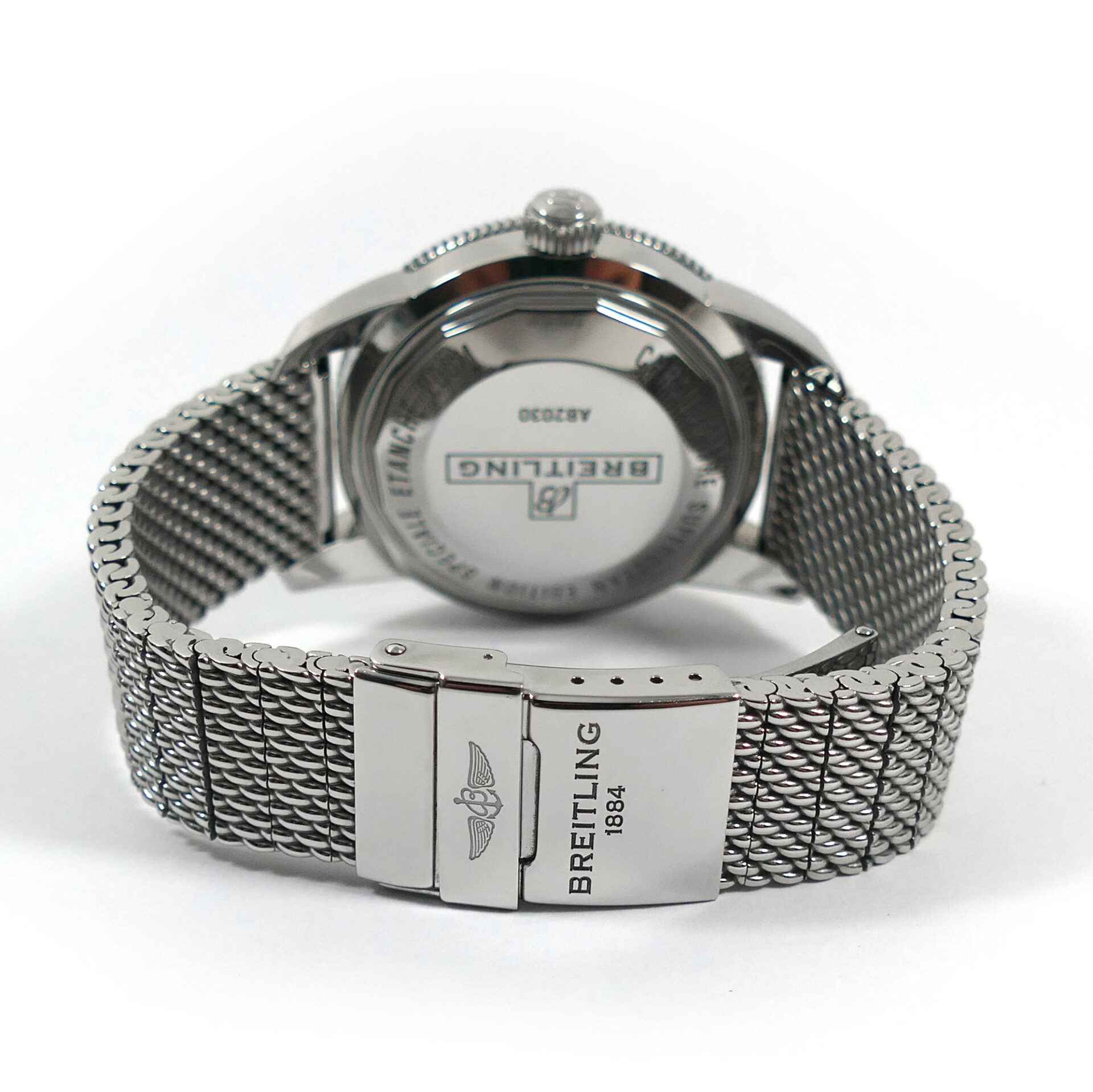 Read Morethis breitling watch is excellent condition and comes with its complete set of box, papers, and warranty card dated february, 2021. This watch features a blue dial with a blue ceramic bezel on a stainless steel mesh bracelet, this color scheme really stands out and looks stunning in person. This watch is available and ready to ship immediately!