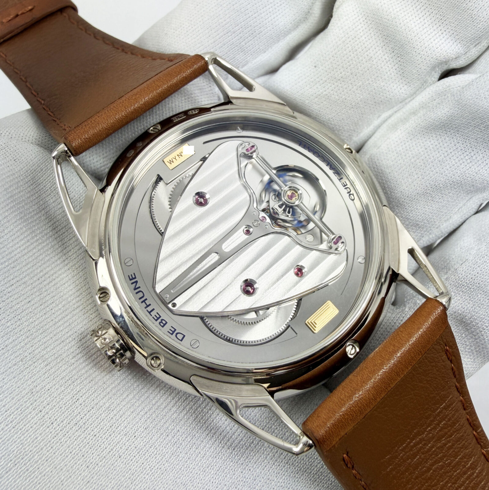 this de bethune watch comes with its box, booklet, travel case, and warranty paper dated august, 2021. The photos shown are of the exact watch being sold and accurately represent its condition. This watch is in stock and ready to ship immediately!