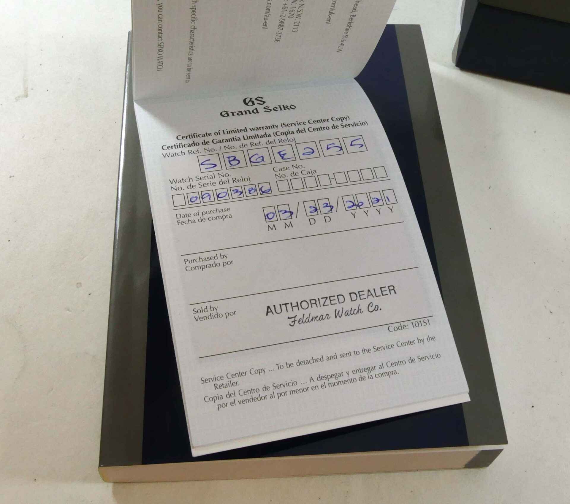 Read Morethis grand seiko is in excellent condition and comes with its complete set of original boxes, papers, and links. It features a beautiful green patterned dial. This is a limited edition run of 1200 pieces, this is number #1111/1200. The warranty papers are dated 06/07/2019.