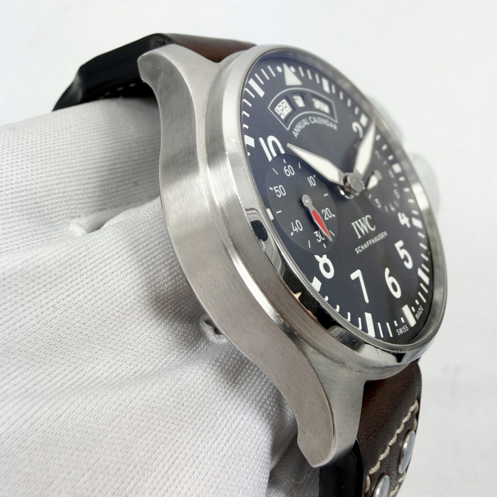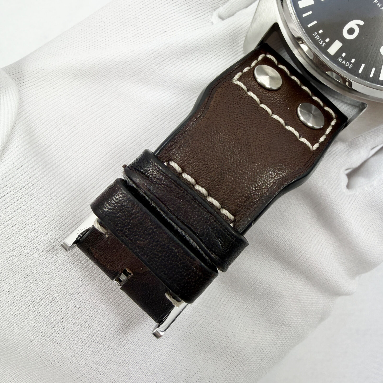 This IWC Big Pilot watch comes with its box, booklets, and warranty card dated February, 2021. Please note there are some light spots on the dial that are difficult to see with the naked eye. The photos shown are of the exact watch being sold and accurately re...