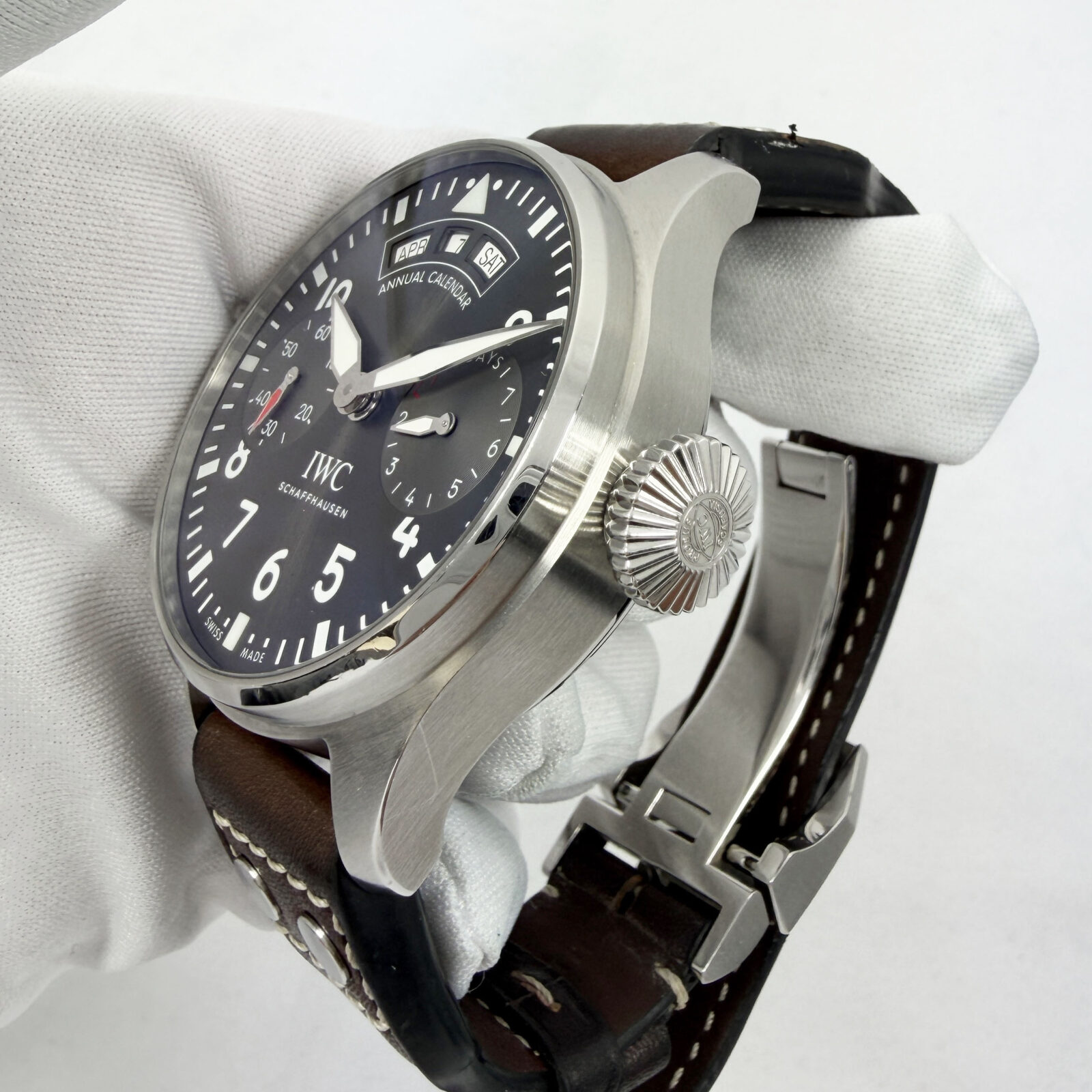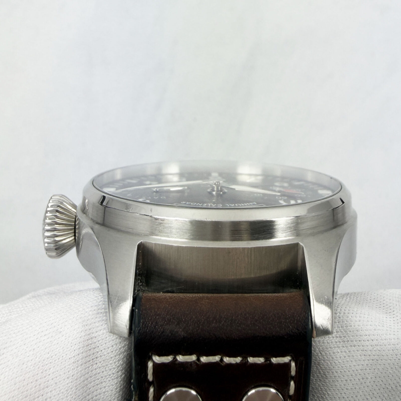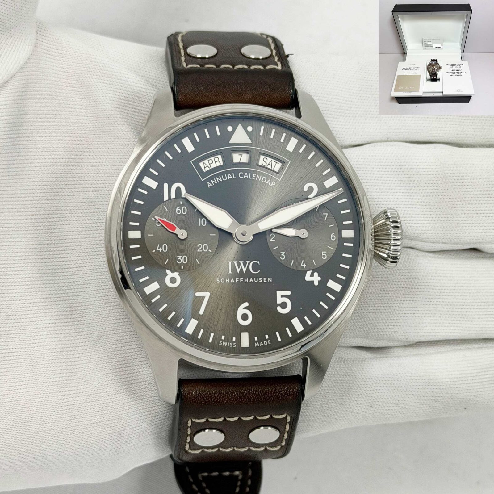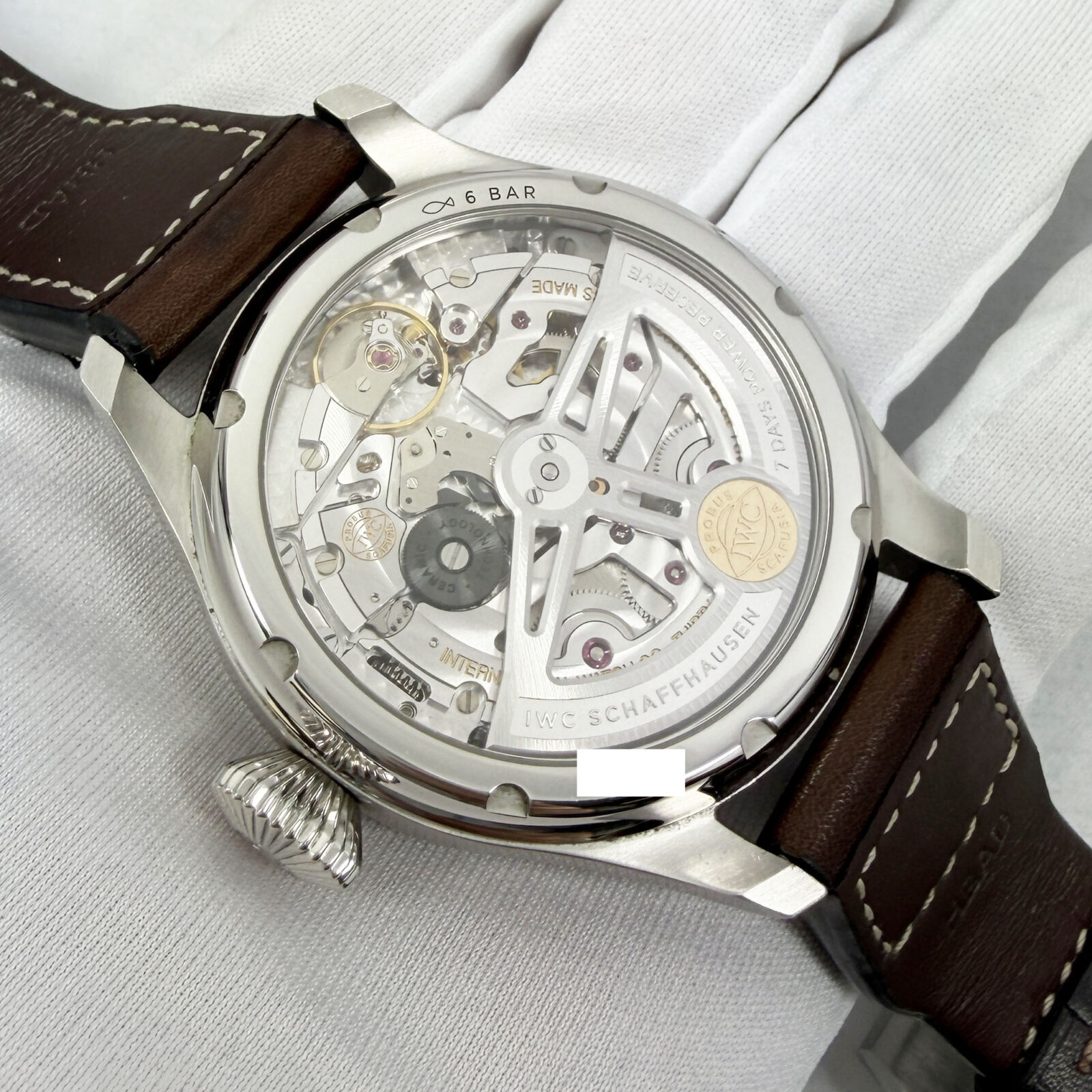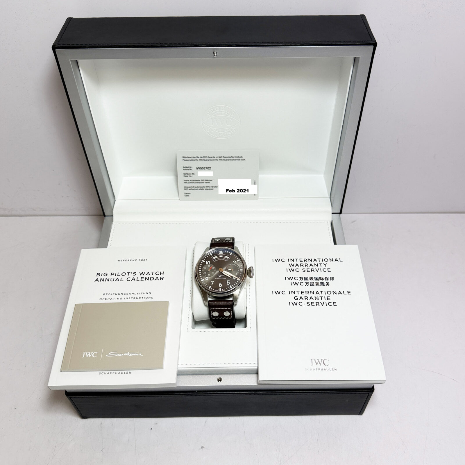 this iwc big pilot watch comes with its box, booklets, and warranty card dated february, 2021. Please note there are some light spots on the dial that are difficult to see with the naked eye. The photos shown are of the exact watch being sold and accurately represent its condition. This watch is in stock and ready to ship immediately!