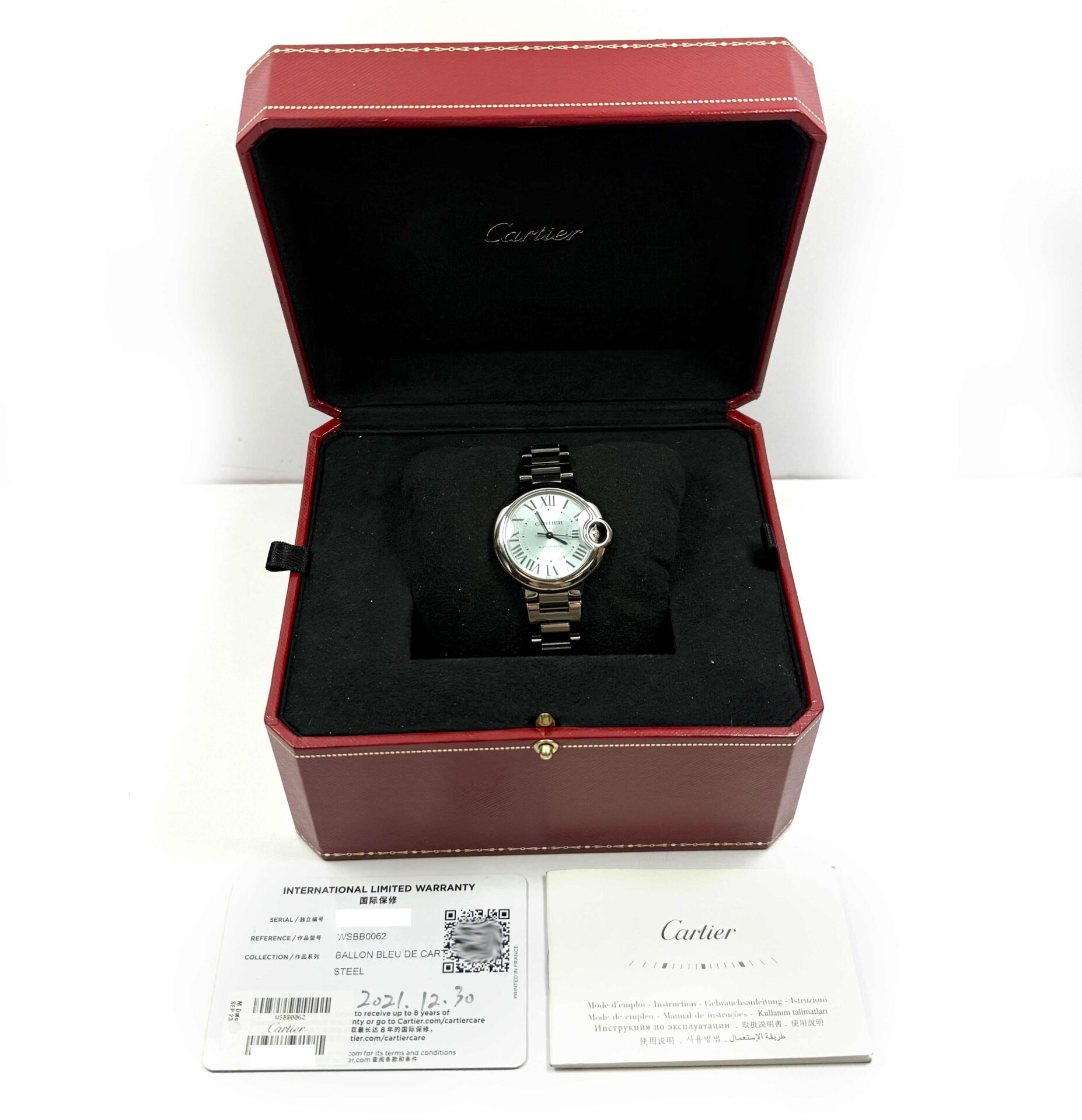 Read Morethis cartier watch is in excellent overall condition showing some light signs of wear on the case and bracelet consistent with preowned watches. This comes with its box, booklet, and warranty card dated december 30th, 2021 as shown in the pictures attached. This watch is in stock and available to ship immediately!