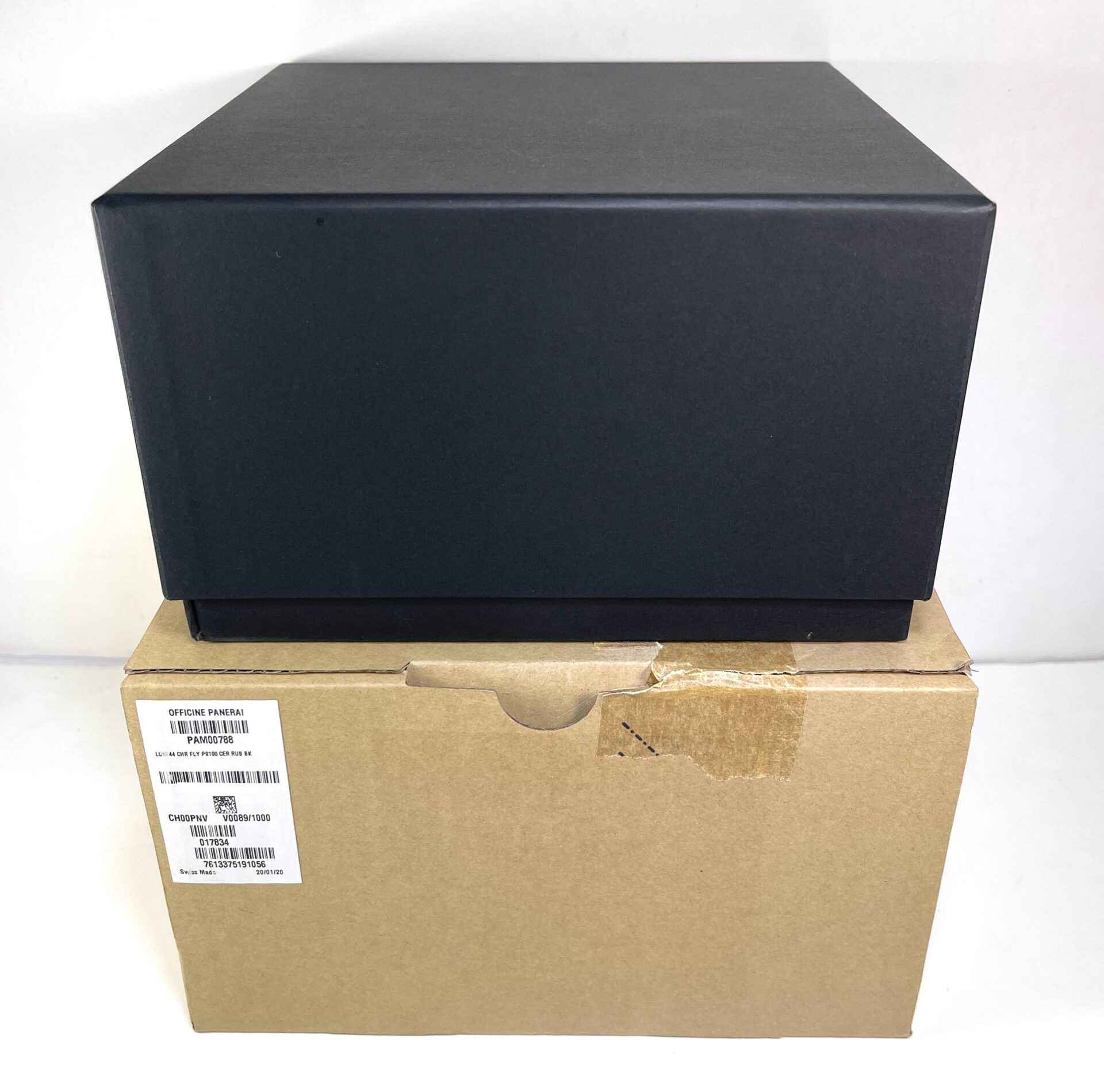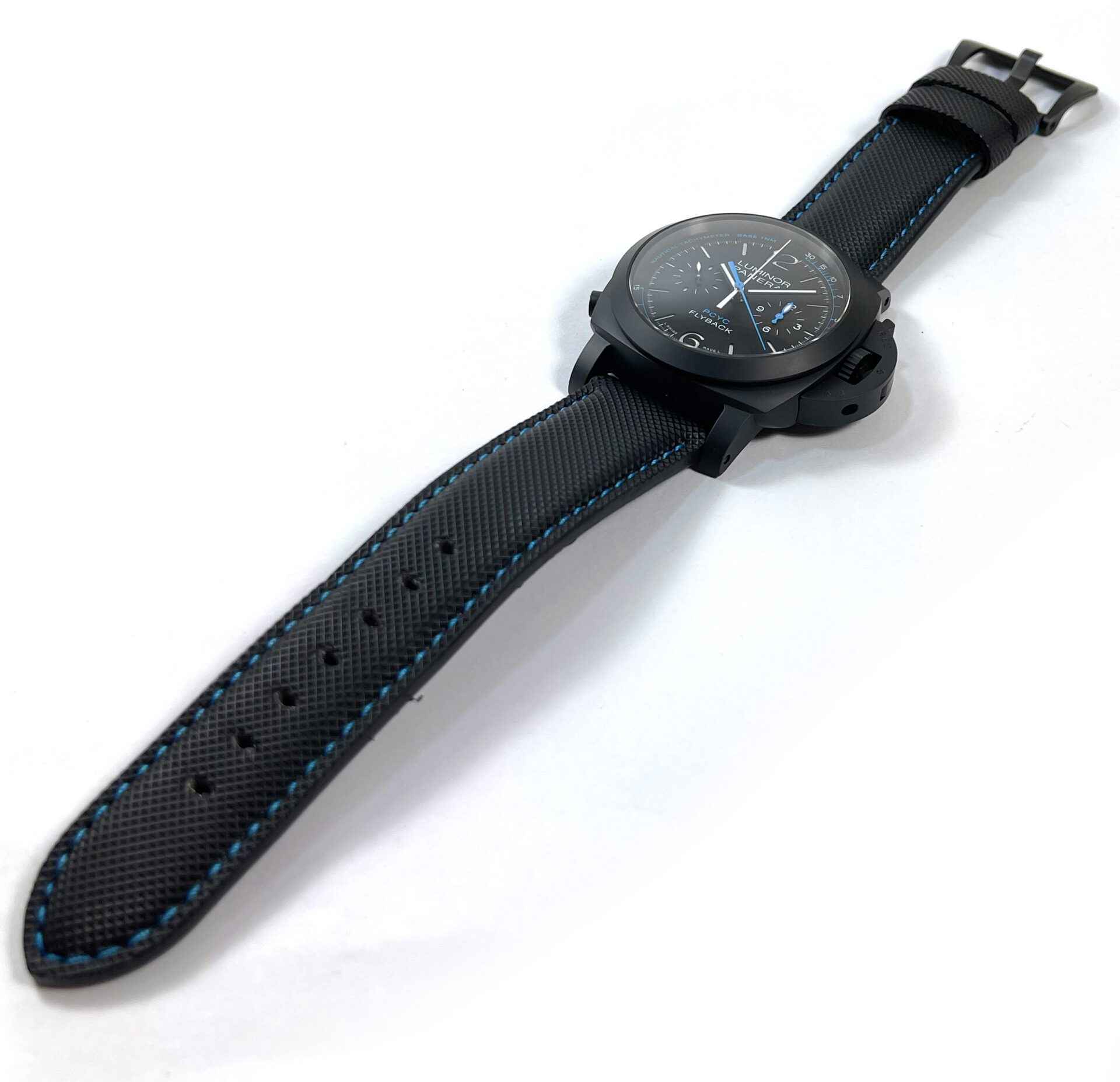 this panerai watch is in mint condition and comes complete with box, papers, one extra strap, panerai tools, bezel protector, and warranty card dated may 11th, 2021. This watch is in stock and available to ship immediately!