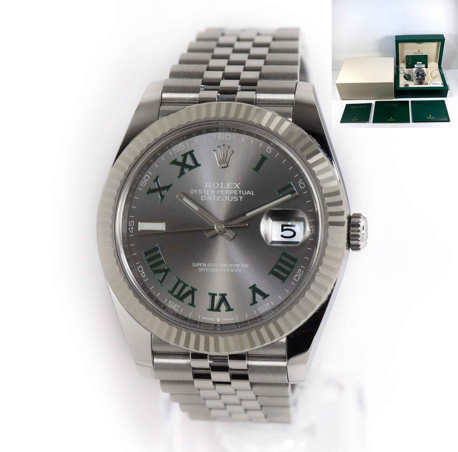 Read Morethis rolex wimbledon is in mint condition and comes with its box, papers, hang tags, spare links, bezel protector, and warranty card dated april 24th, 2021. This watch features a stainless steel case surrounding a grey wimbledon dial and comes on a steel jubilee bracelet. This watch is in stock and available to ship immediately!