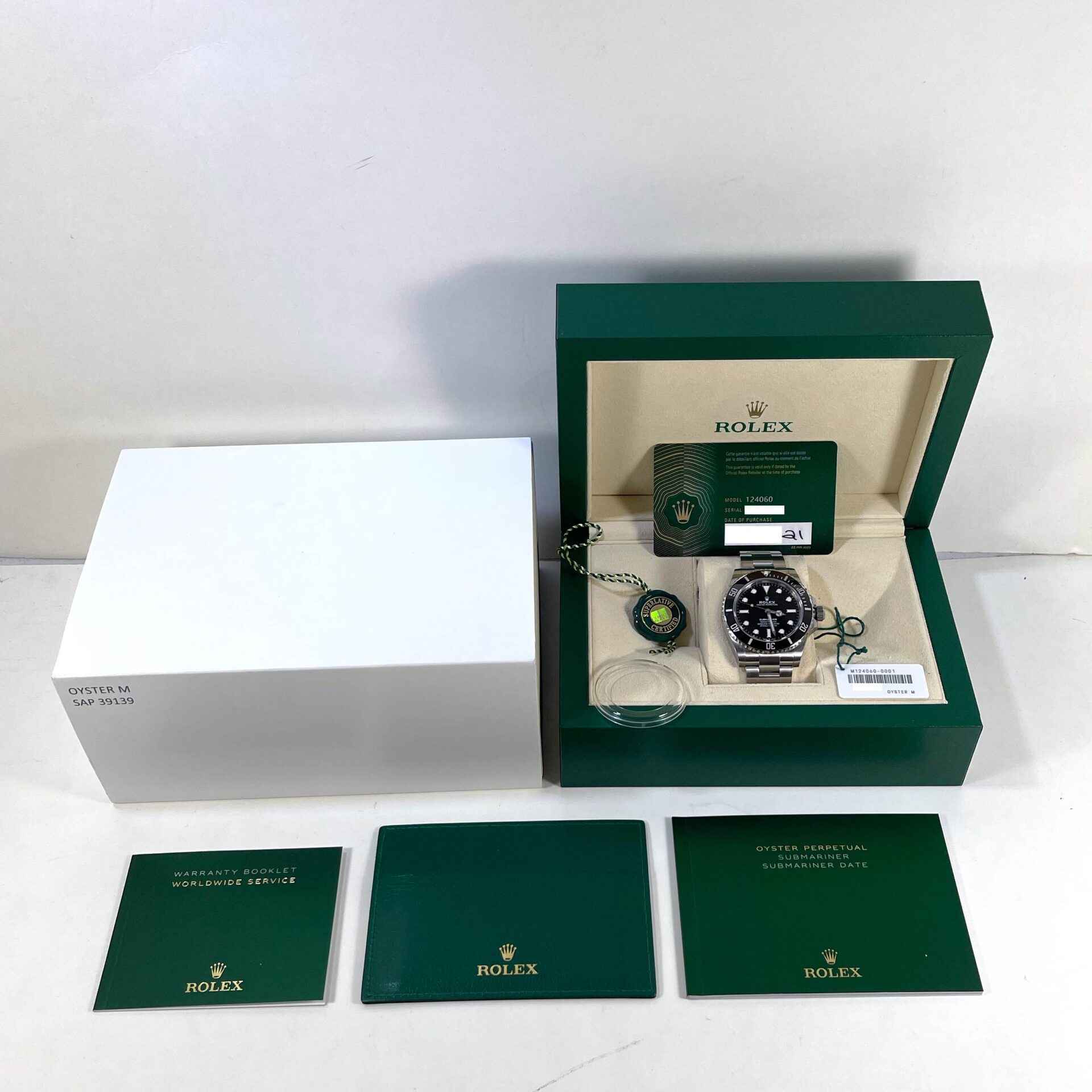 this rolex submariner is in mint condition and comes with its original box, papers, hang tags, bezel protector, and warranty card dated for 2021. This watch is in stock and ready to ship immediately.