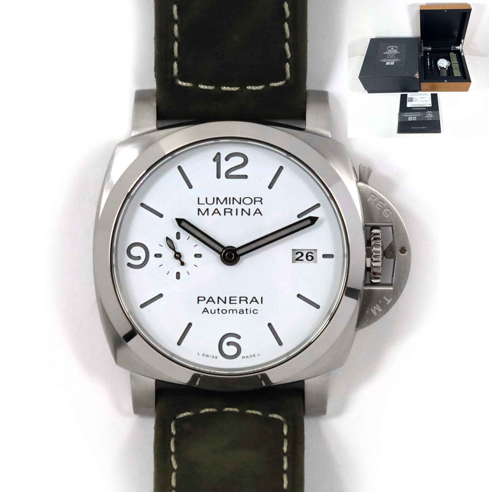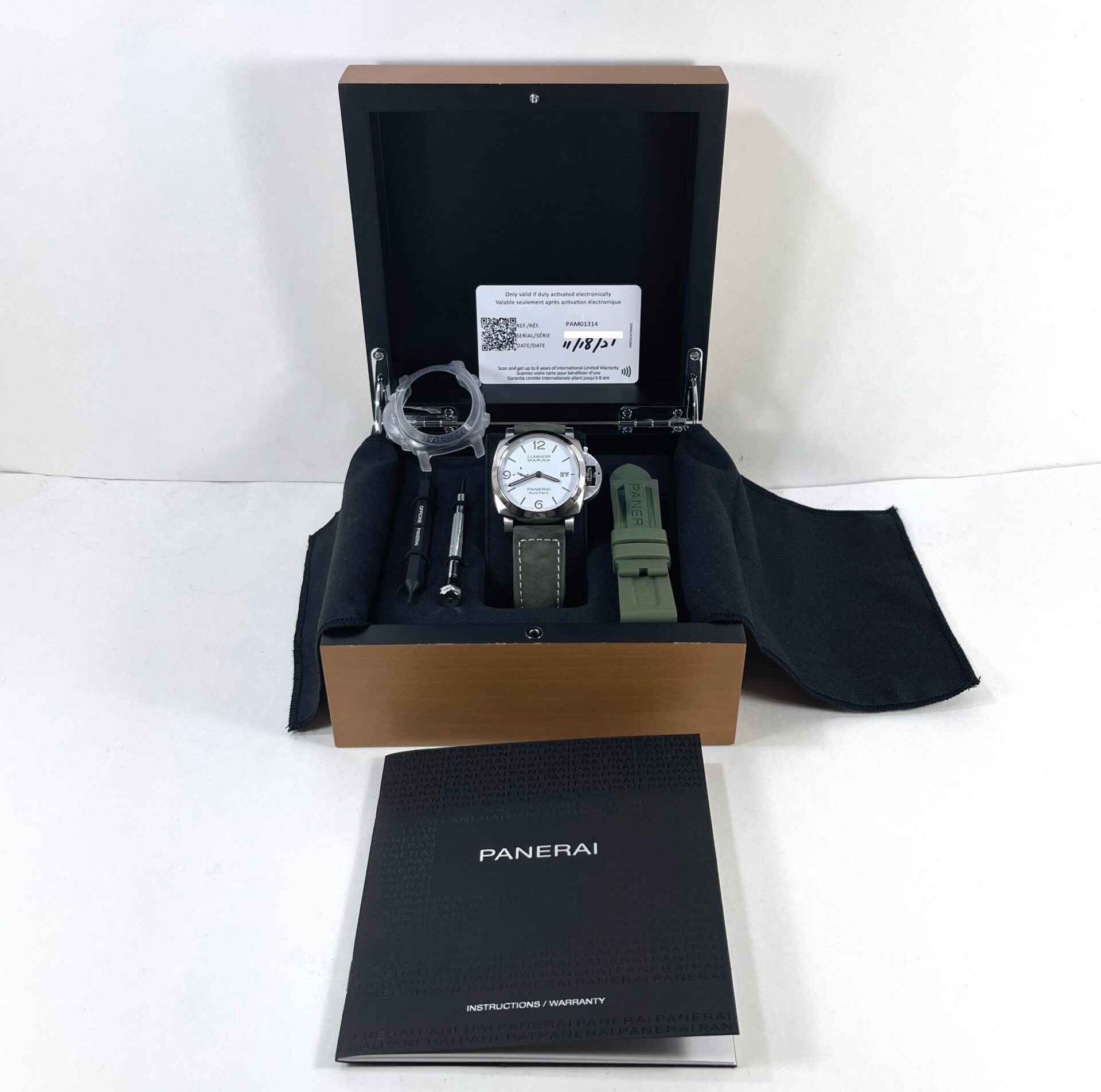 Read Morethis panerai watch is new and comes with stickers still on the caseback as shown in the photos attached. This watch comes complete with box, papers, one extra strap, panerai tools, bezel protector, and warranty card dated november 18th, 2021. This watch is in stock and available to ship immediately!