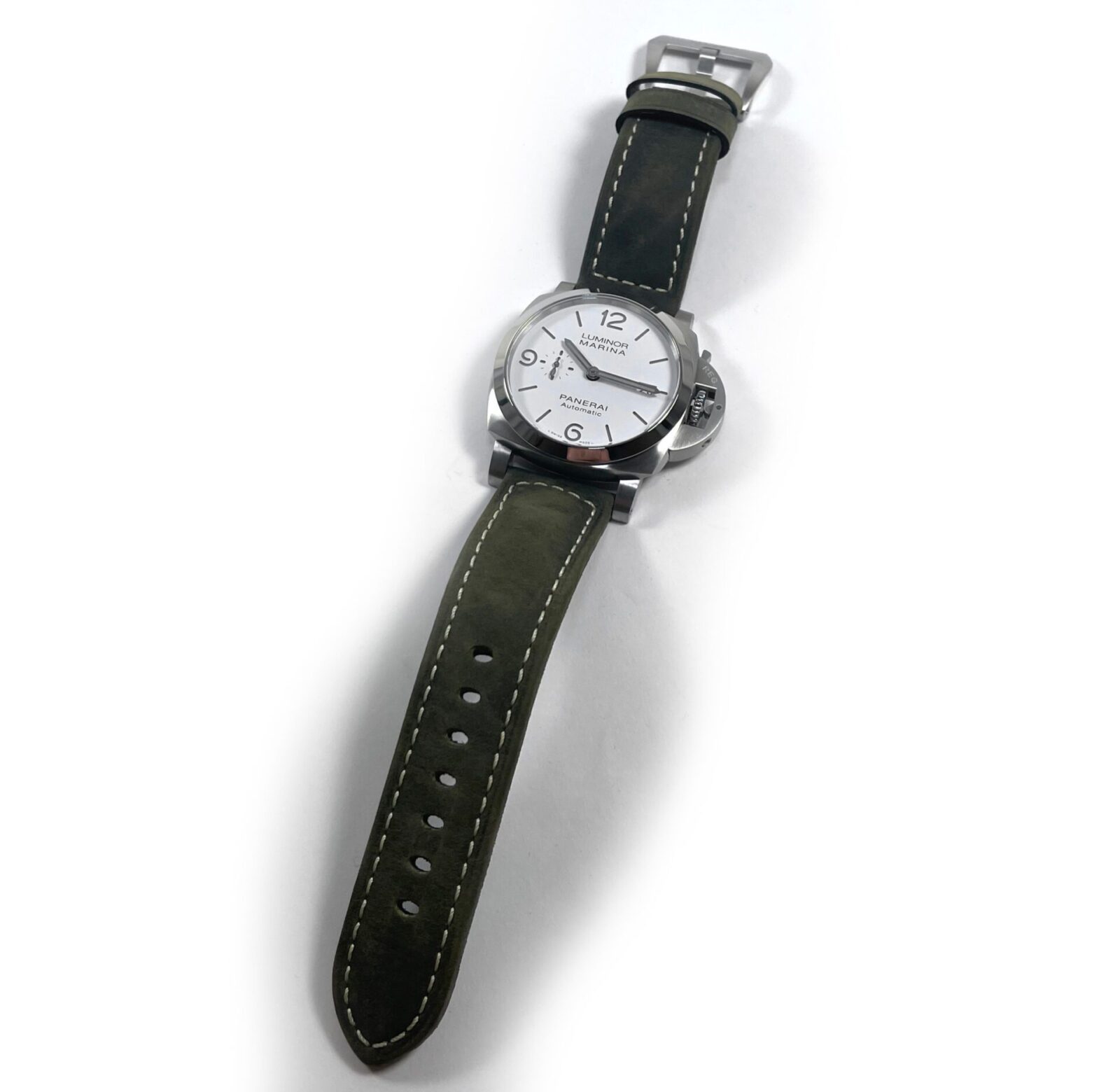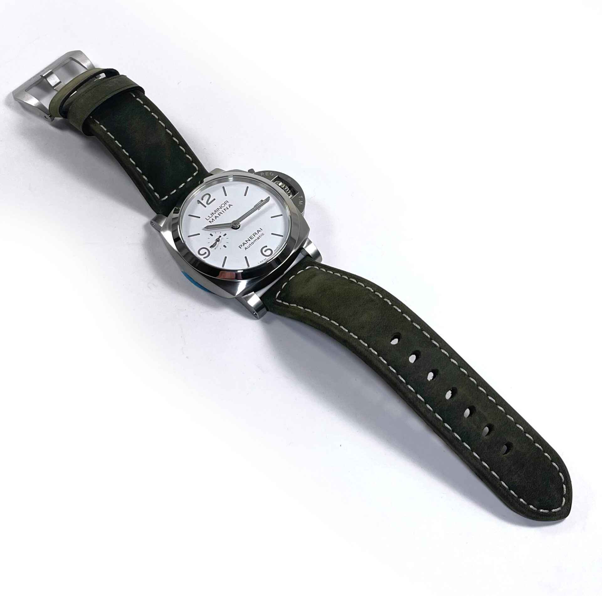 This Panerai watch is new and comes with stickers still on the caseback as shown in the photos attached. This watch comes complete with box, papers, one extra strap, Panerai tools, bezel protector, and warranty card date...