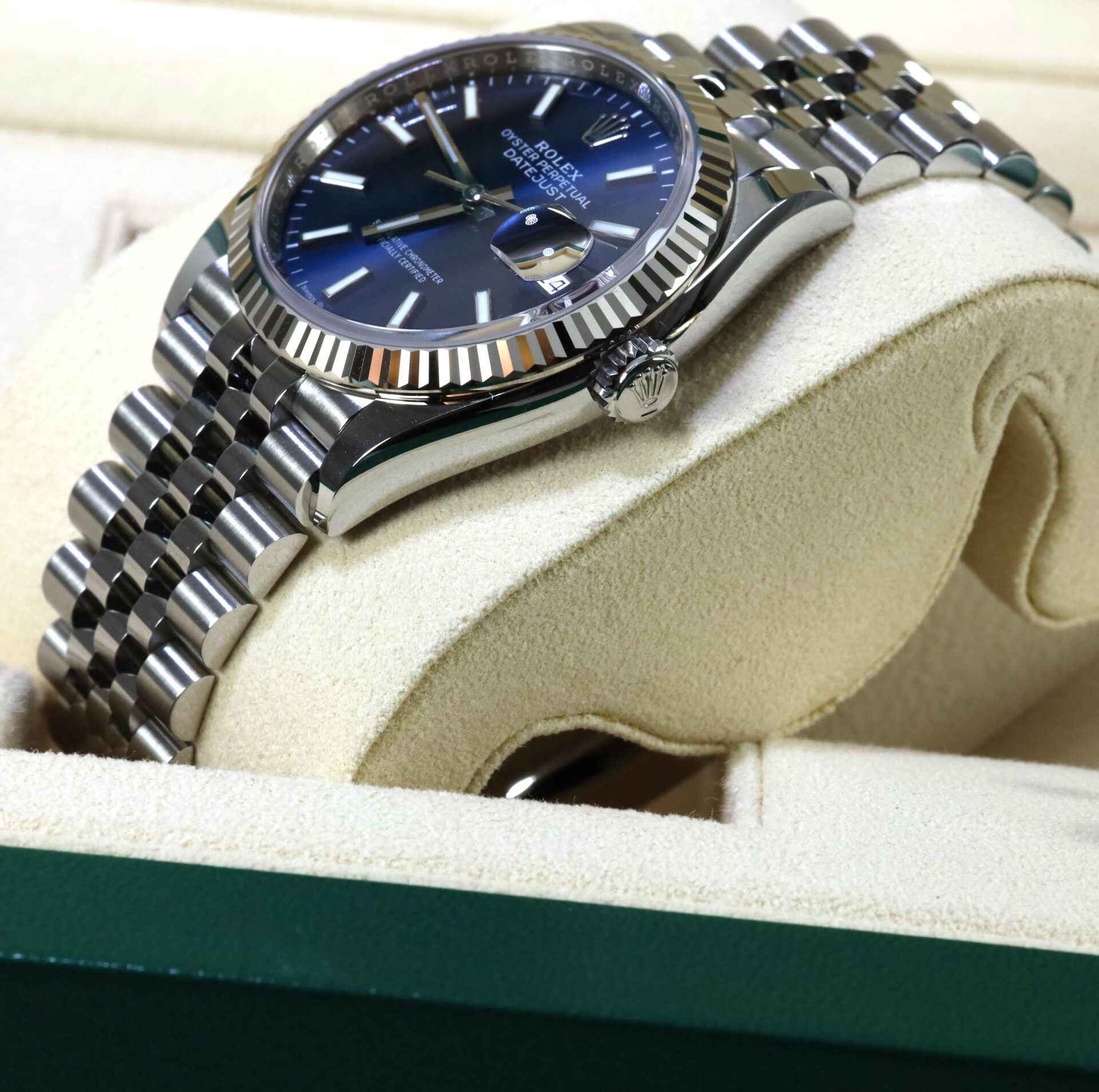 Read Morethis rolex is new and comes with most of its stickers still on the watch as shown in the pictures attached. This watch comes with box, papers, hang tag and warranty card dated september 25th, 2021. This datejust is in stock and ready to ship immediately!