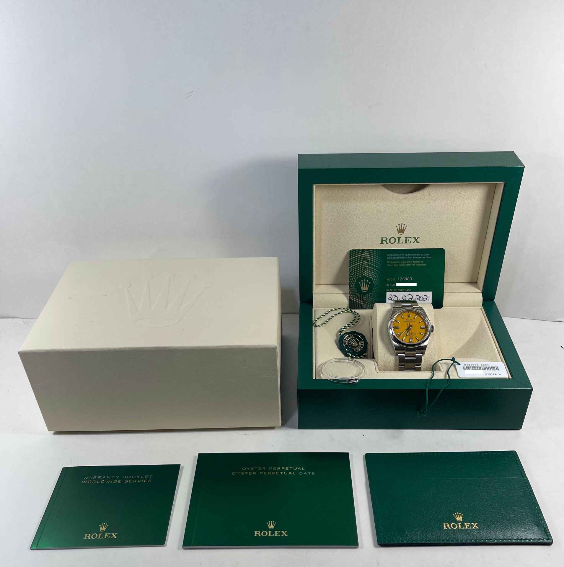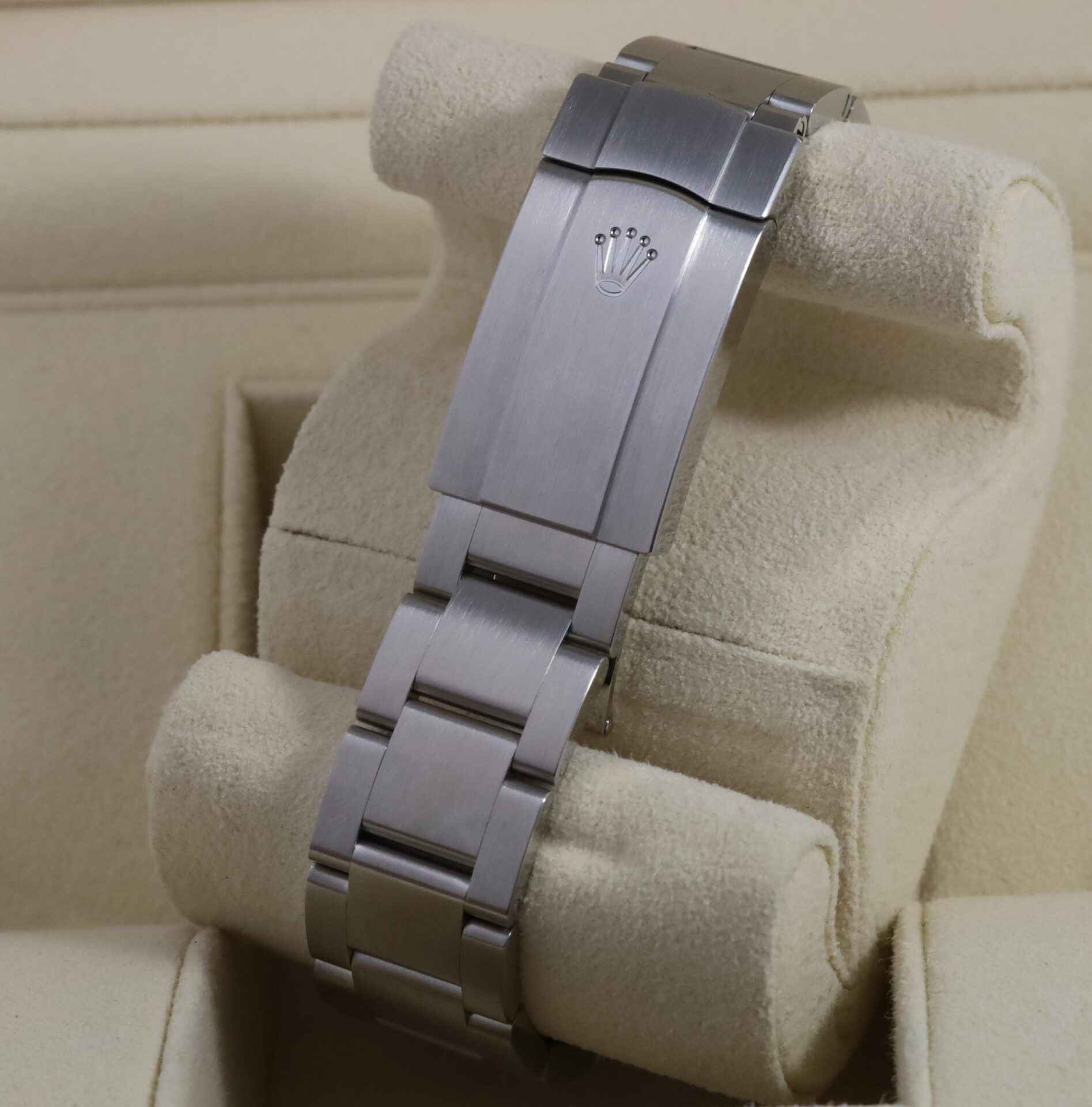This Rolex is new and comes with box, papers, hang tags, bezel protector, and warranty card dated February 23rd, 2021. This watch has the stickers on the case back as shown in the photos attached. This watch is in stock ...