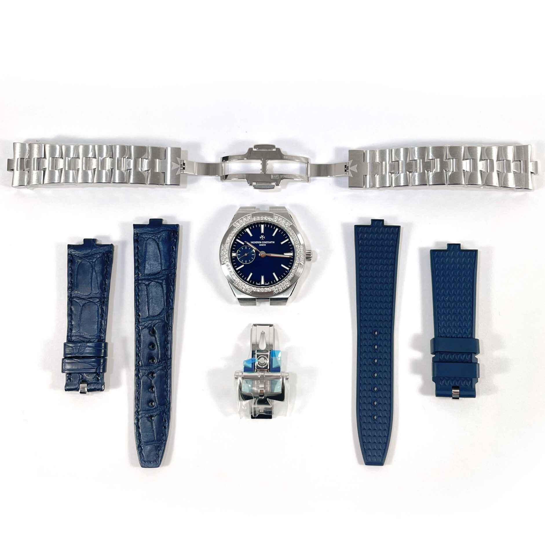 This Vacheron Constantin is new and has stickers still on the steel bracelet as shown in the photos attached. This watch comes with its box, papers, hang tag, 2 spare straps, 1 spare VC butterfly clasp, and warranty card....