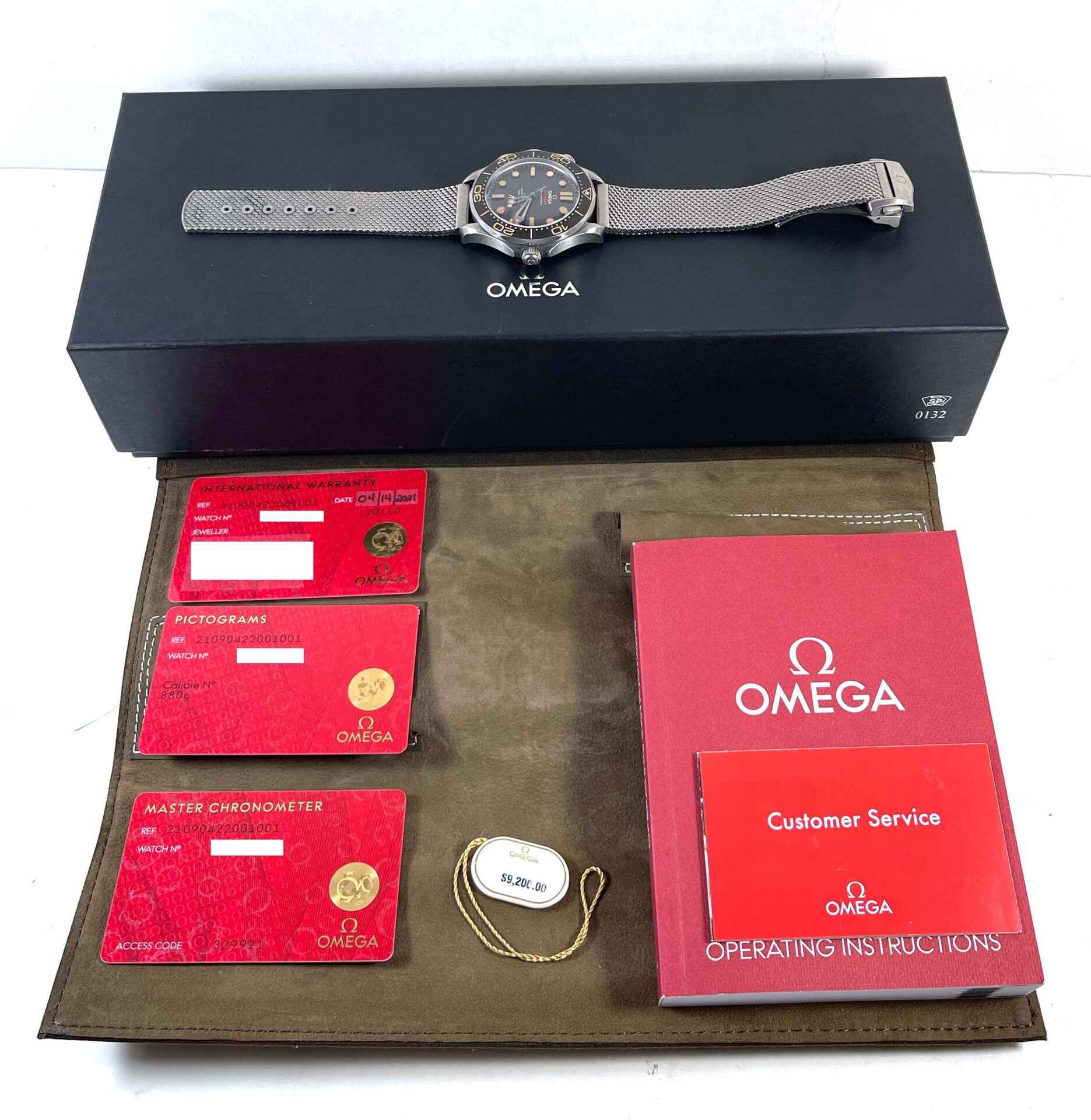This Omega Seamster is in excellent condition and comes with box, booklet, hang tag, Omega branded travel case, and warranty cards dated April 14th, 2021. This watch features a titanium case and bracelet that wears very l...