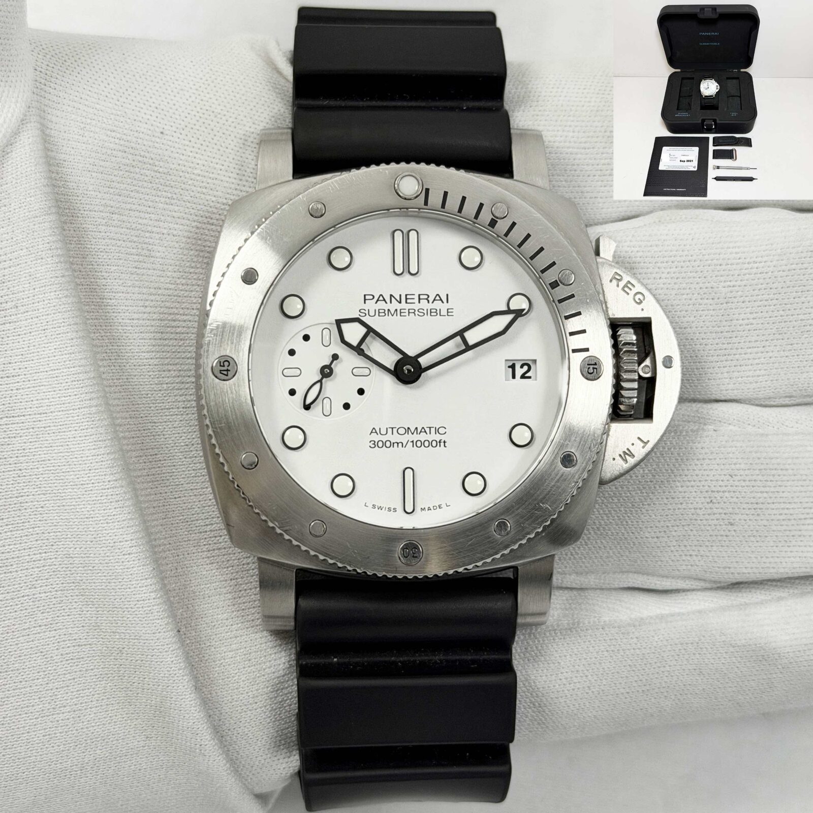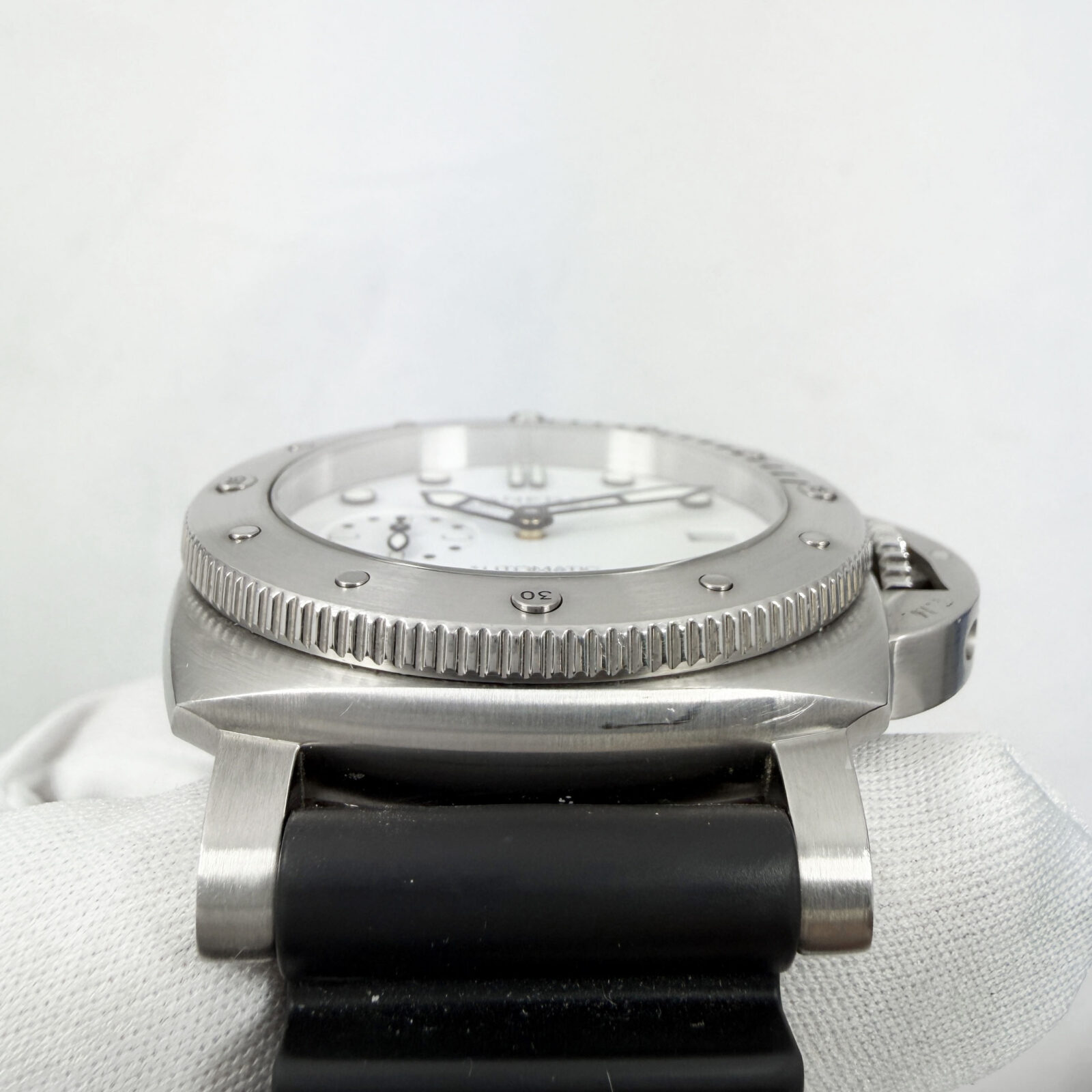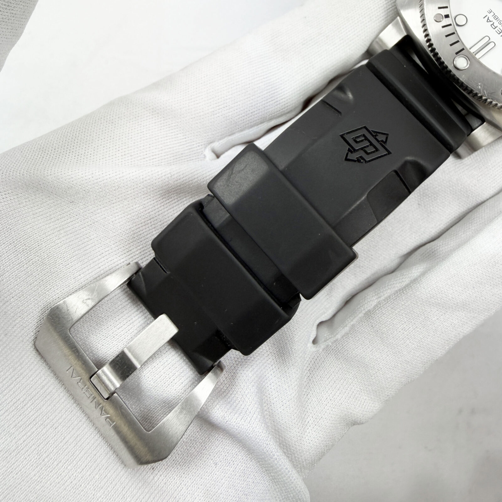 This Panerai Submersible watch comes with its box, booklet, extra straps, brand accessories, and warranty card dated January, 2021. The photos shown are of the exact watch being sold and accurately represent its condition. This watch is in stock and ready to s...