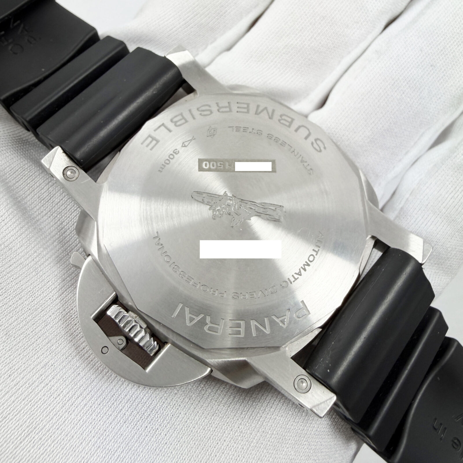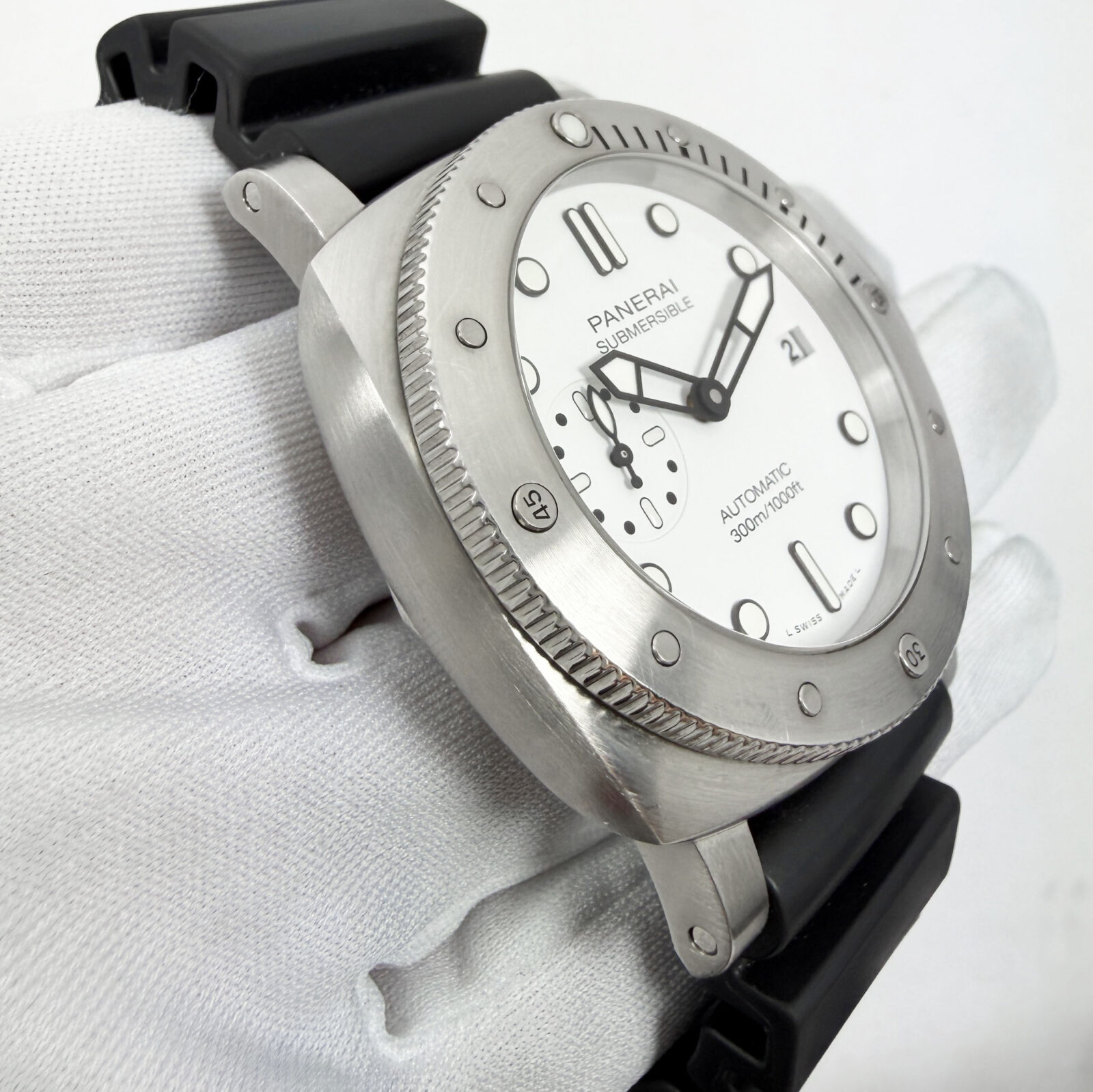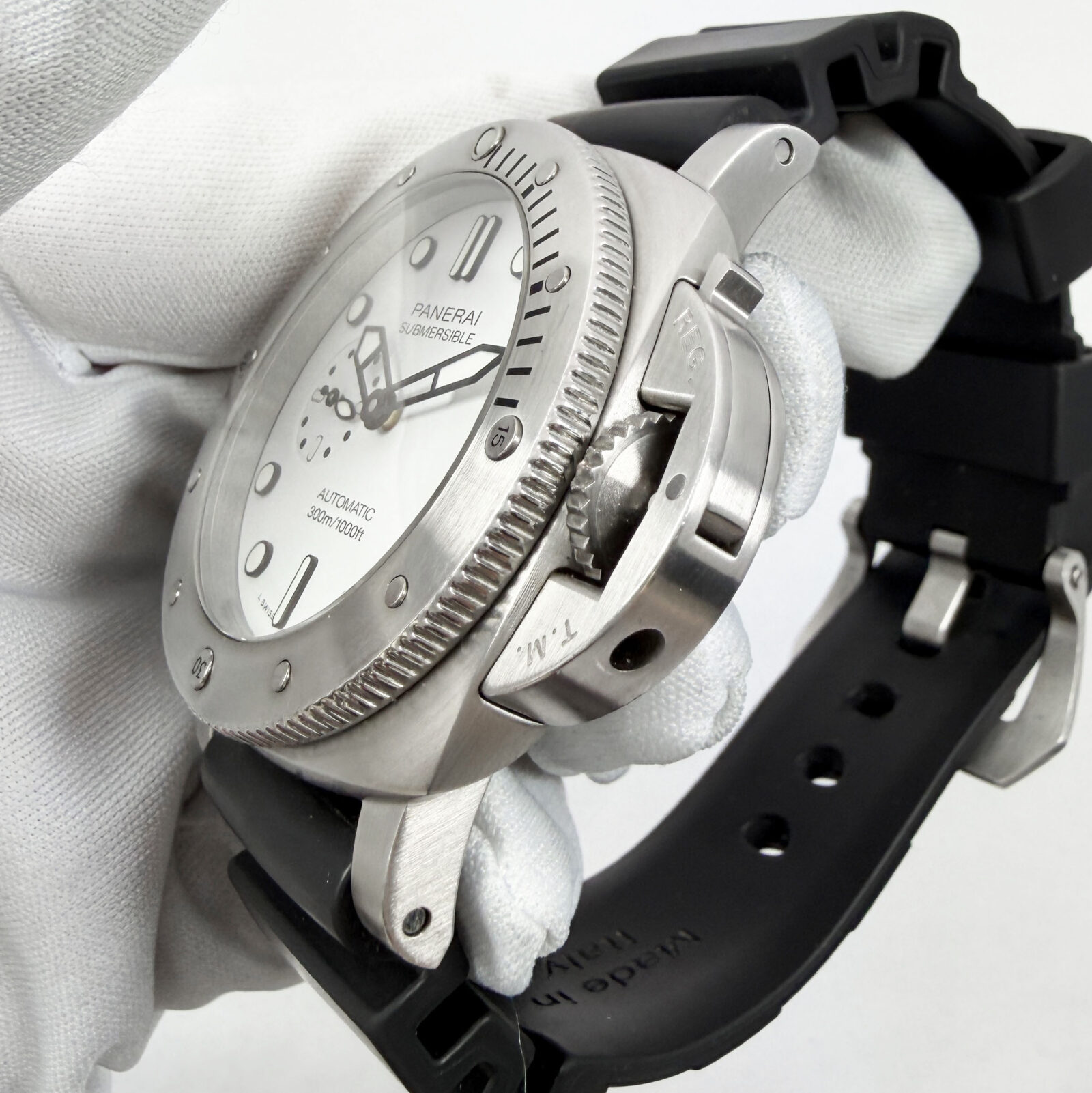 This Panerai Submersible watch comes with its box, booklet, extra straps, brand accessories, and warranty card dated January, 2021. The photos shown are of the exact watch being sold and accurately represent its condition. This watch is in stock and ready to s...