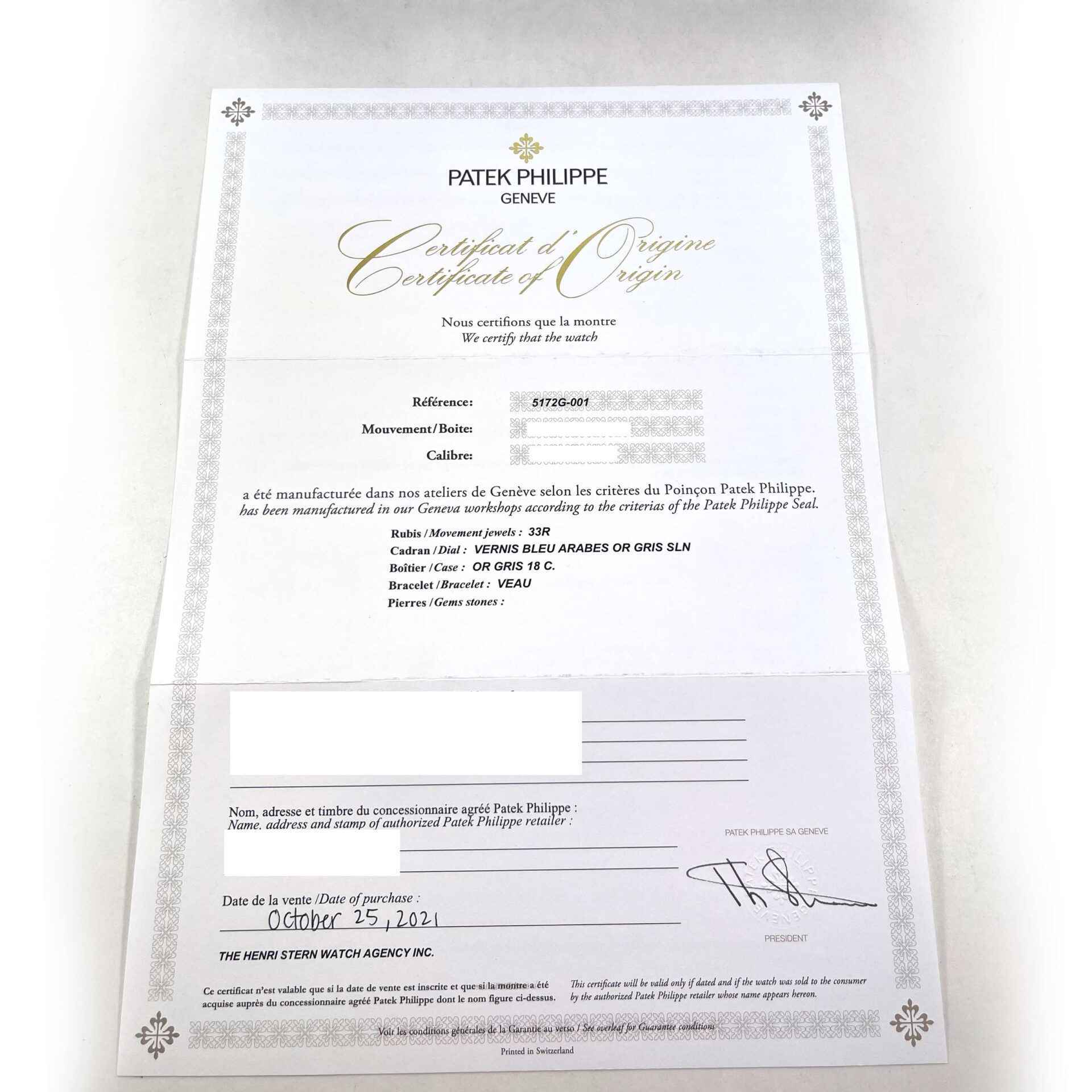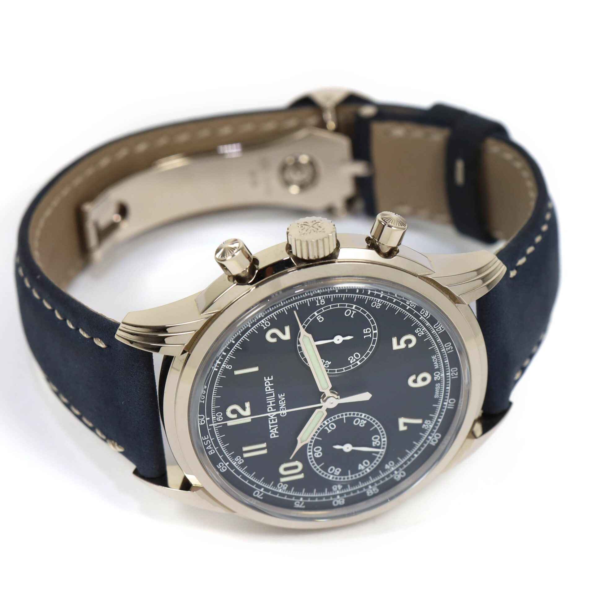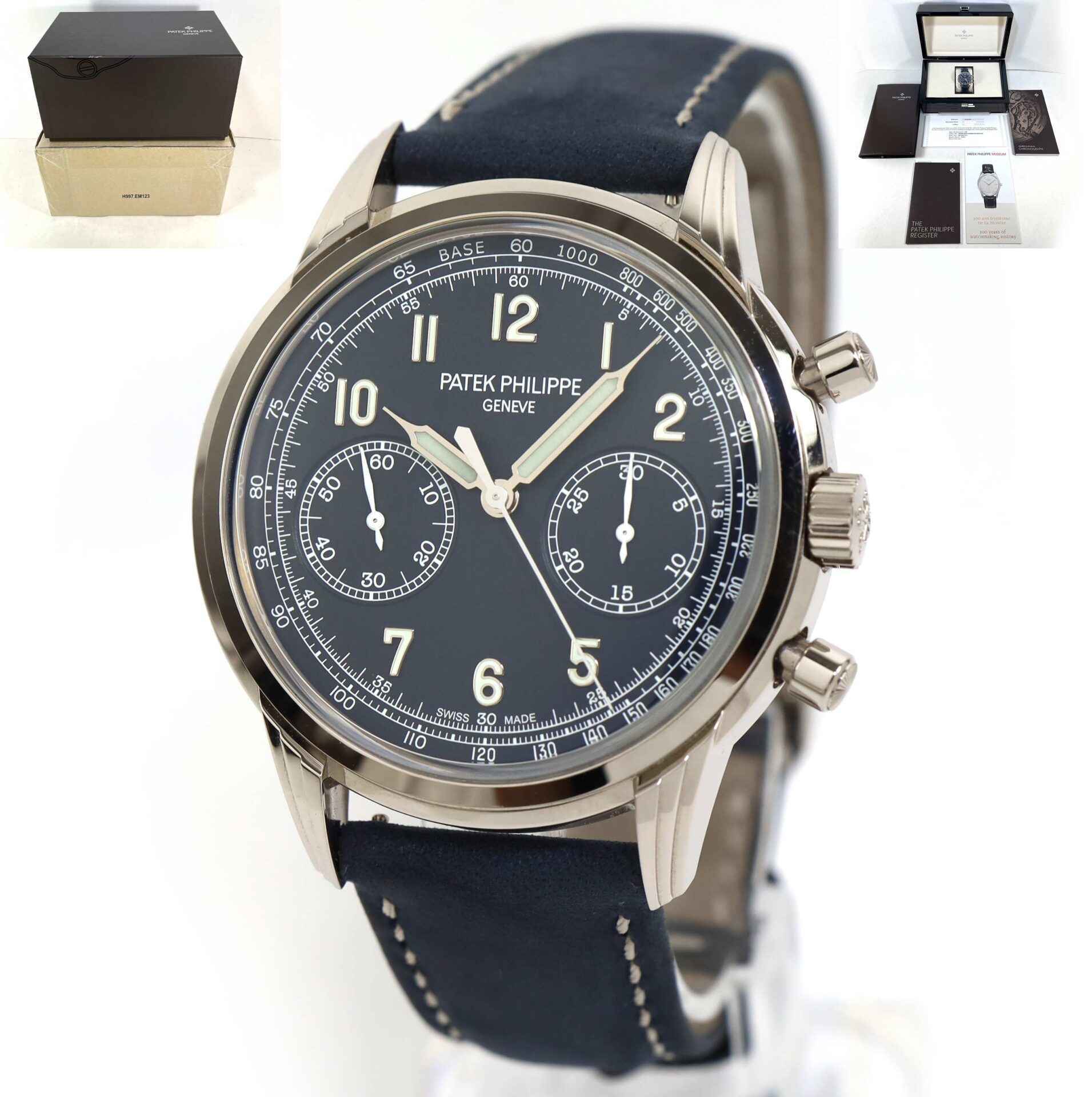 Read Morethis patek is in mint condition and comes with its complete set of box, booklets, and warranty paper dated october 25th, 2021. The previous owner wore this watch maybe 3 times, it is as close to new as you can get! this watch features a white gold case surrounding a blue dial with gold applied numerals and comes on a blue calfskin strap. This watch is in stock and available to ship immediately!